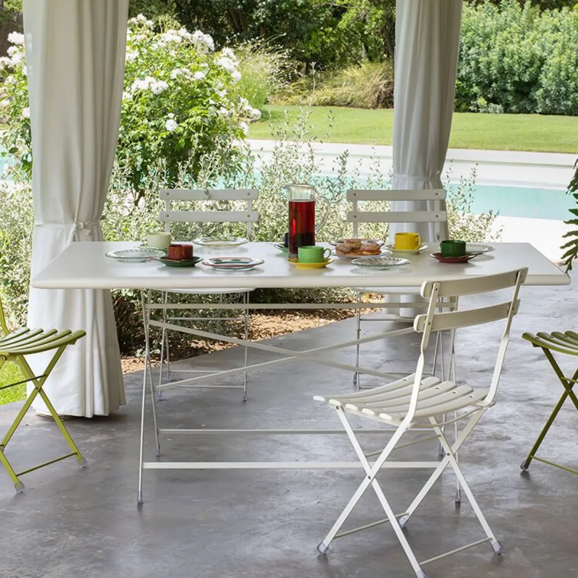 Que ce soit le balcon d’une maison ou un grand pré vert, Arc en Ciel offre des idées très colorées pour profiter des espaces extérieurs. Tables de différentes dimensions, sièges sans accoudoirs : des solutions pliantes pour un mobilier informel et vif. La vaste gamme de coloris disponible rend cette collection riche de solutions vives et fascinantes, pour apporter de la gaieté et du style à tous les types d’espaces.