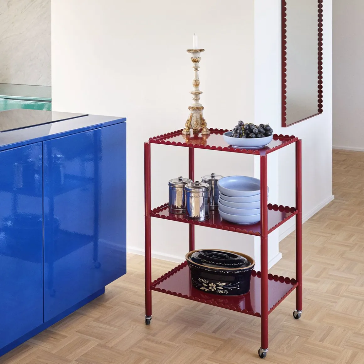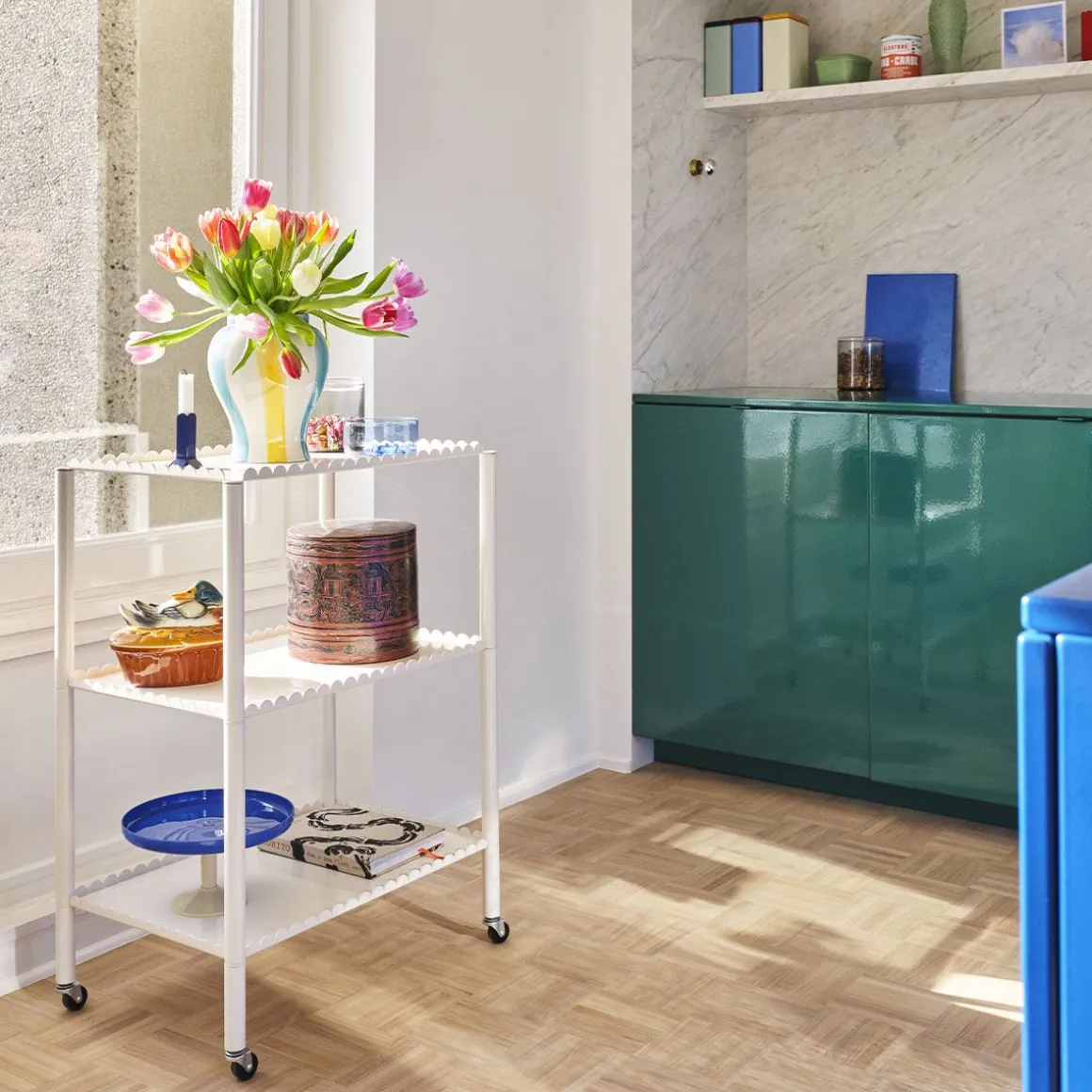 Conçu par le duo belge Muller Van Severen, Arcs Trolley est un chariot fonctionnel et décoratif enfermé dans une chaîne unifiée d’arcs verticaux. Petit meuble à forte présence, le chariot allie techniques industrielles et lignes poétiques pour créer une expression distinctive et sculpturale. L’élégant cadre festonné supporte deux ou trois niveaux, avec des pieds fins montés sur roulettes pour une manipulation facile. Fabriqué en acier peint par poudrage dans différentes options de couleurs, le chariot convient à la plupart des pièces et utilisations de la maison, de la présentation et du rangement d’objets dans le salon aux étagères supplémentaires dans la cuisine ou comme table de chevet.