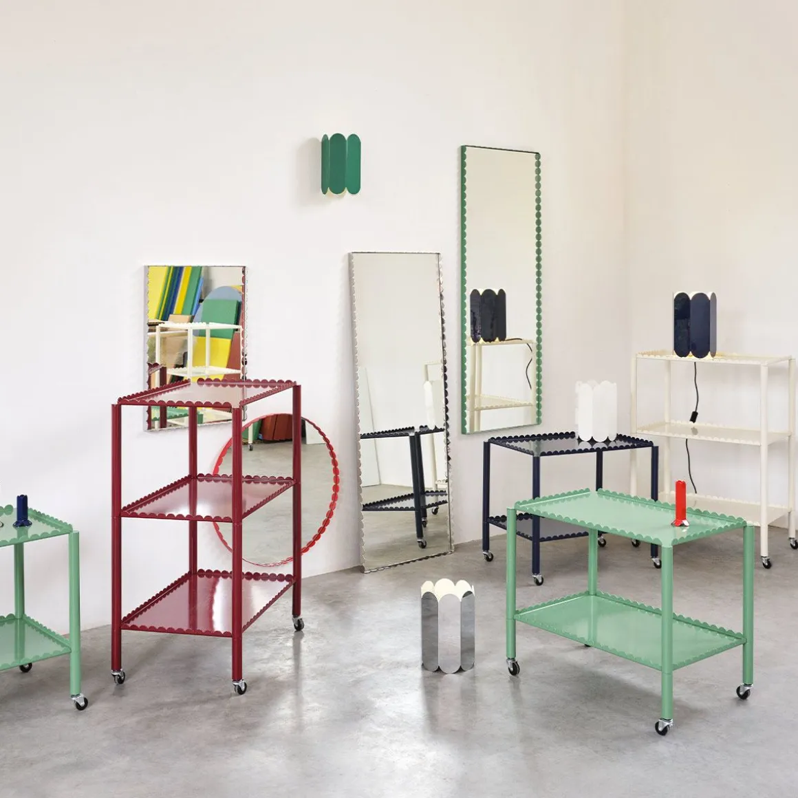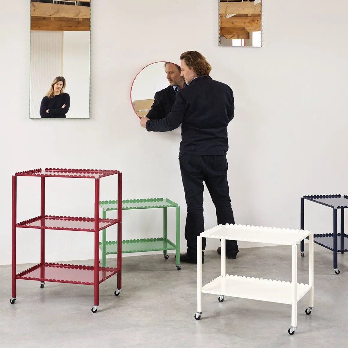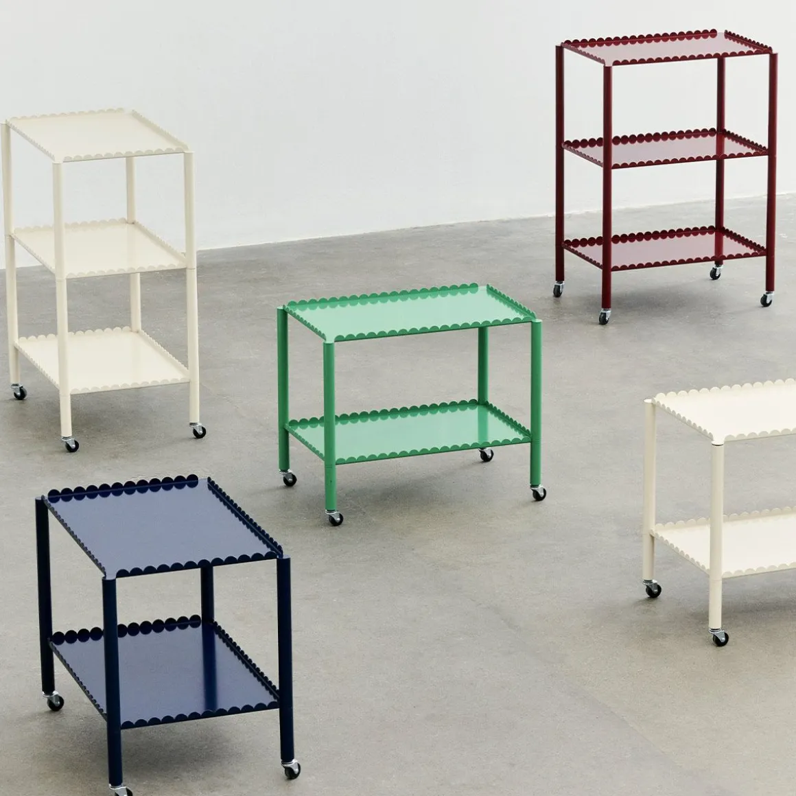 Conçu par le duo belge Muller Van Severen, Arcs Trolley est un chariot fonctionnel et décoratif enfermé dans une chaîne unifiée d’arcs verticaux. Petit meuble à forte présence, le chariot allie techniques industrielles et lignes poétiques pour créer une expression distinctive et sculpturale. L’élégant cadre festonné supporte deux ou trois niveaux, avec des pieds fins montés sur roulettes pour une manipulation facile. Fabriqué en acier peint par poudrage dans différentes options de couleurs, le chariot convient à la plupart des pièces et utilisations de la maison, de la présentation et du rangement d’objets dans le salon aux étagères supplémentaires dans la cuisine ou comme table de chevet.