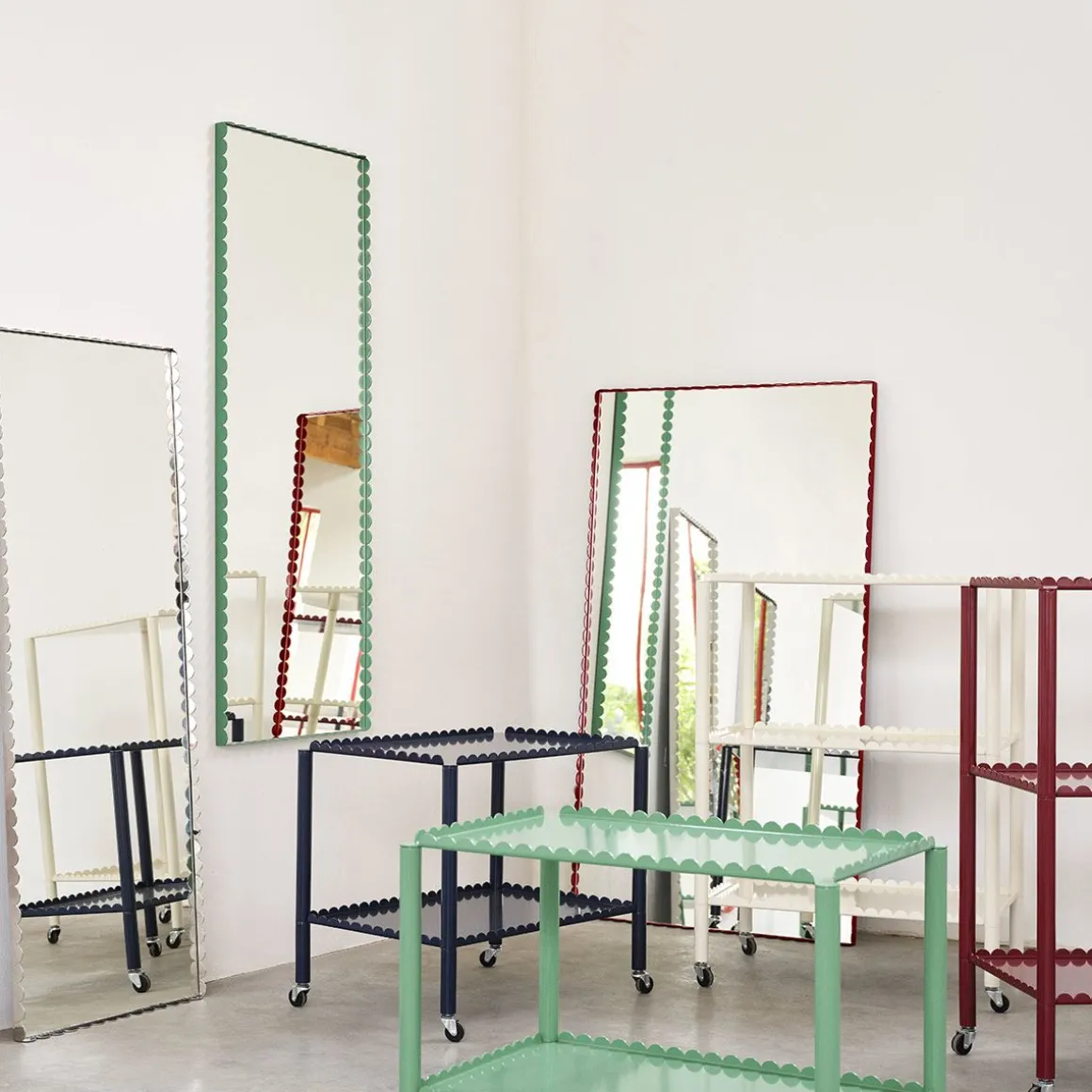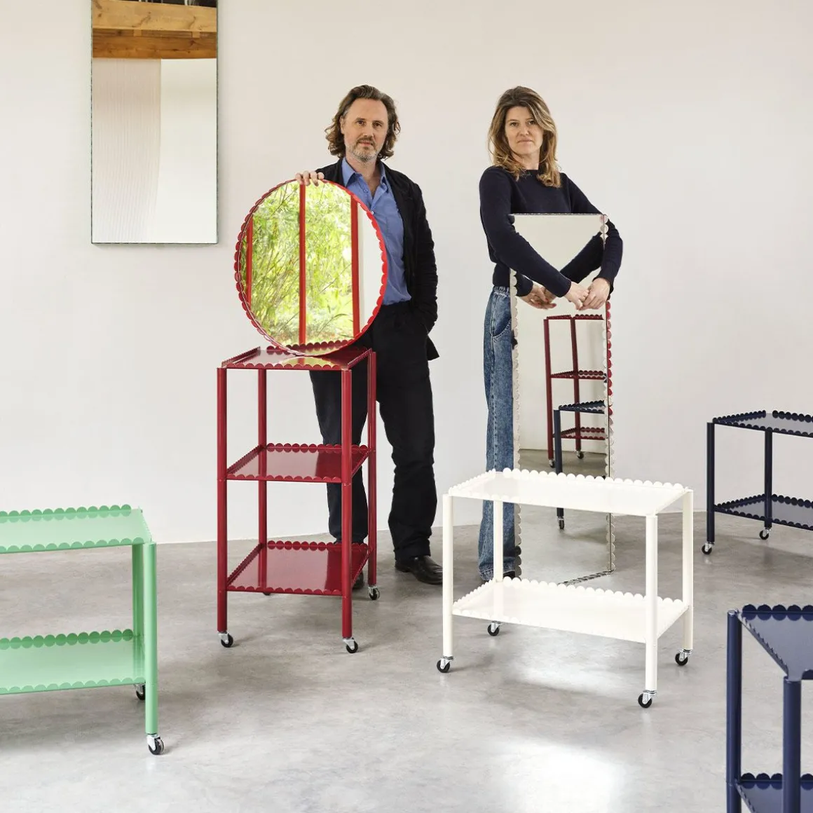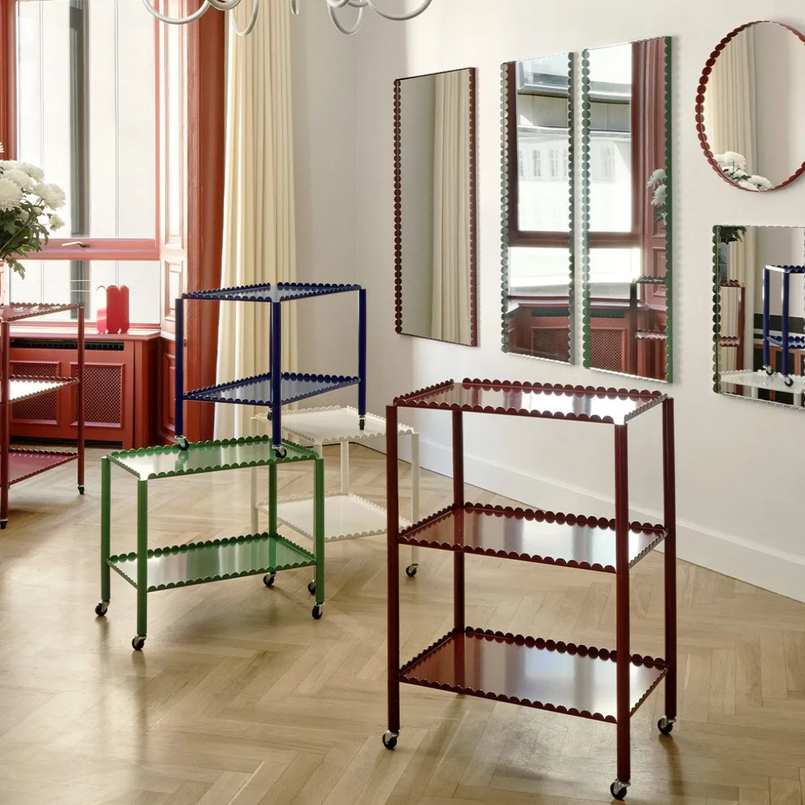 Conçu par le duo belge Muller Van Severen, Arcs Trolley est un chariot fonctionnel et décoratif enfermé dans une chaîne unifiée d’arcs verticaux. Petit meuble à forte présence, le chariot allie techniques industrielles et lignes poétiques pour créer une expression distinctive et sculpturale. L’élégant cadre festonné supporte deux ou trois niveaux, avec des pieds fins montés sur roulettes pour une manipulation facile. Fabriqué en acier peint par poudrage dans différentes options de couleurs, le chariot convient à la plupart des pièces et utilisations de la maison, de la présentation et du rangement d’objets dans le salon aux étagères supplémentaires dans la cuisine ou comme table de chevet.
