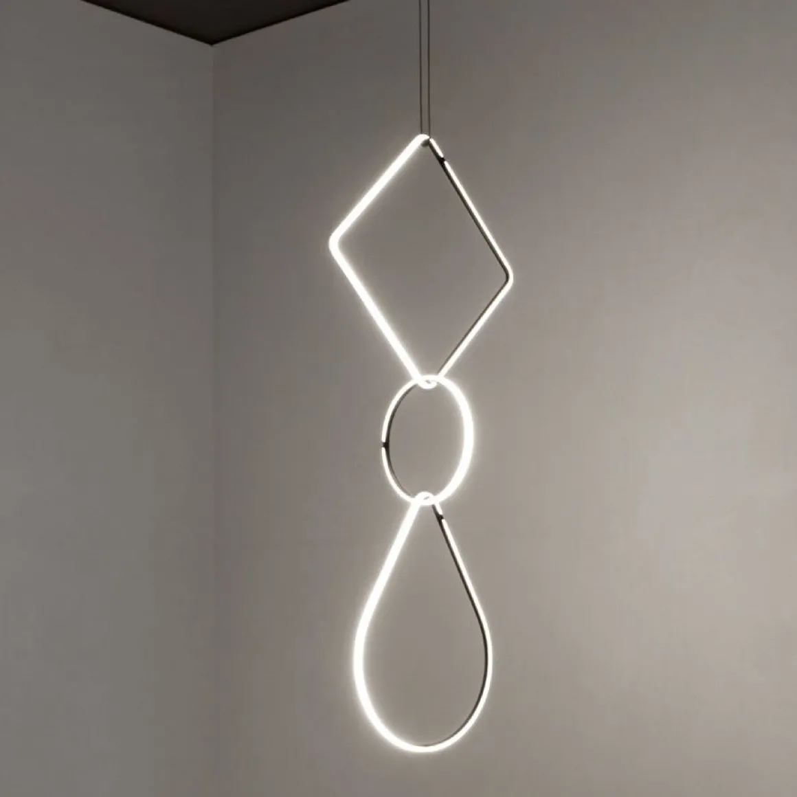 Arrangements est à la fois comme un bijou qui pend d’une chaîne portée autour du cou, puis une lumière conçue pour être suspendue depuis le plafond.