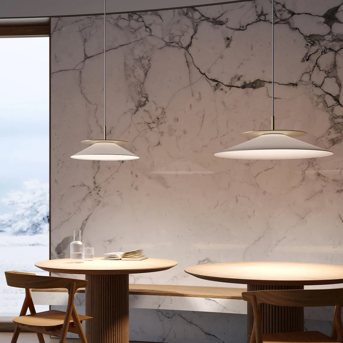 Asia est un concept innovant dont la source lumineuse est à la fois la partie fonctionnelle et la partie décorative de la lampe, résumant ainsi parfaitement la philosophie de Contardi consistant à allier technologie de pointe et design créatif. Une gamme de produits caractérisée par une forme épurée et linéaire, mais avec une forte personnalité, l’abat-jour d’Asia s’inspire des chapeaux pointus des cueilleurs de riz chinois, et la combinaison de matériaux de tissu, de verre et de métal est une autre caractéristique clé de la collection. Il se décline en modèles de table, muraux, de plafond et de suspension de différentes tailles.