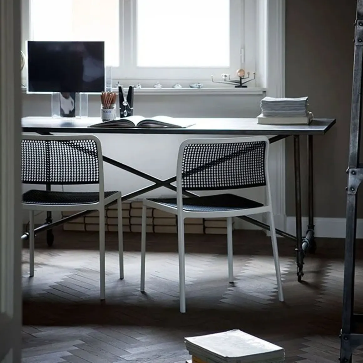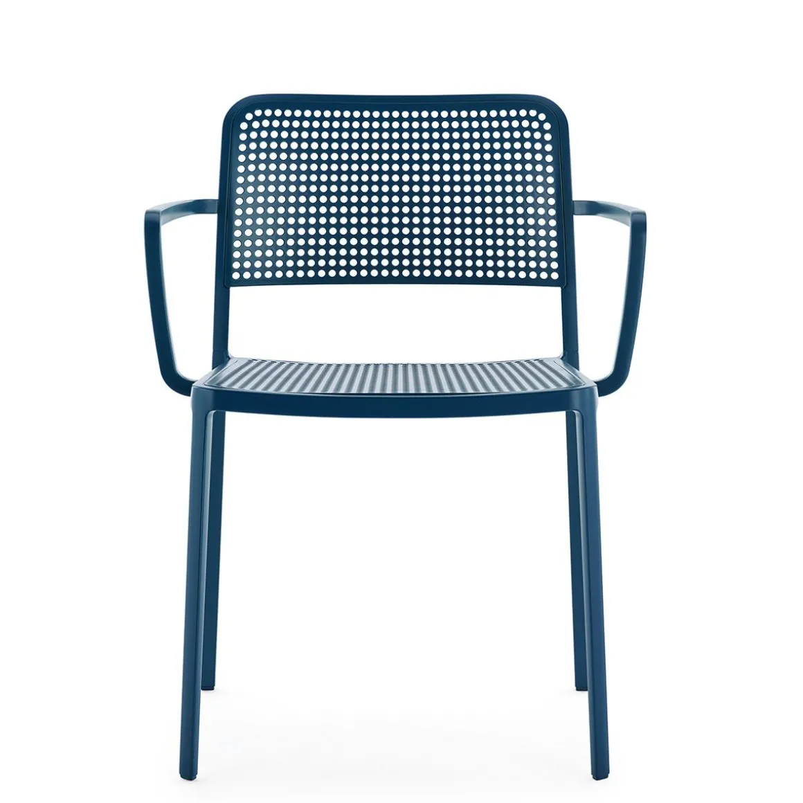Audrey est une chaise polyvalente et contemporaine qui sait, grâce à sa silhouette simple et éthérée obtenue à l’aide d’un processus spécial de moulage sous pression de seulement deux éléments et sans l’utilisation de soudures, se transformer en un produit multifonctions adapté à toutes les utilisations – intérieur, plein air, maison, bureau, espace public – grâce à une grande richesse de combinaisons de matières rigides et rembourrées. Audrey est disponible à la fois en version chaise et en version fauteuil (avec accoudoirs).