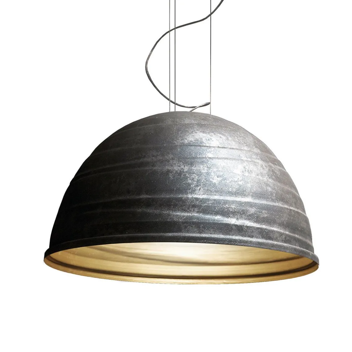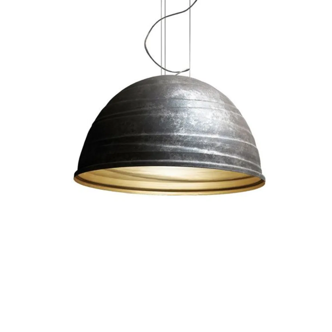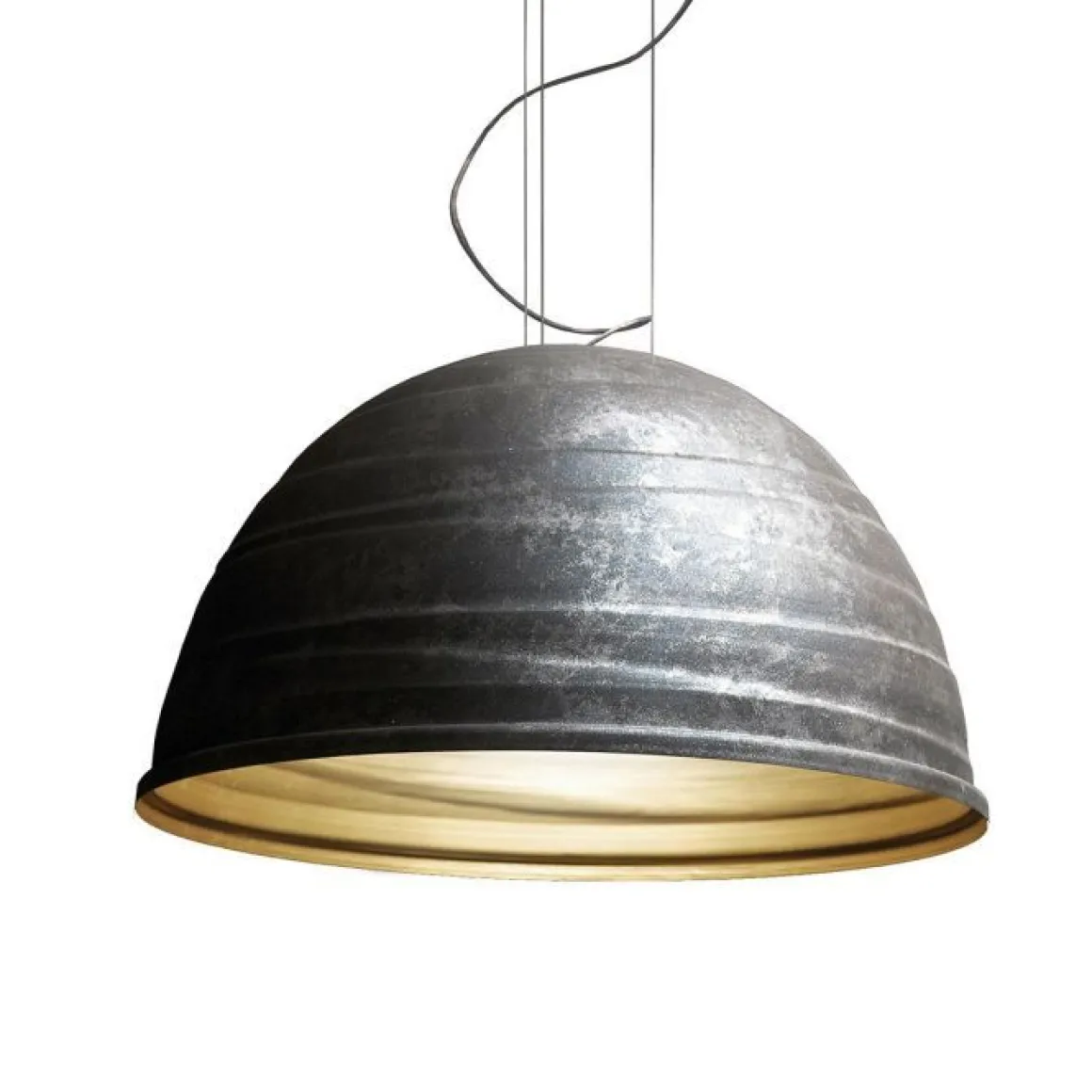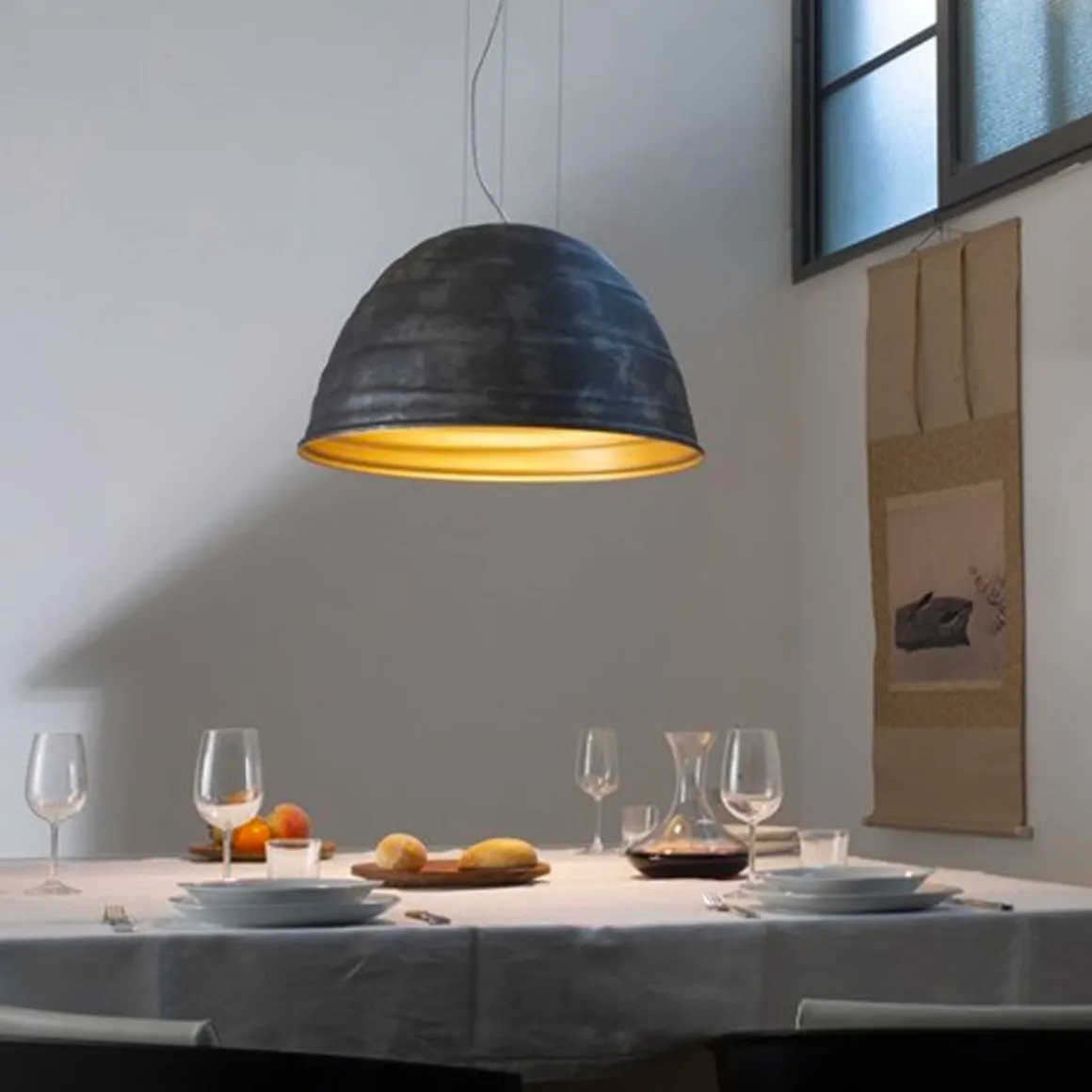 La suspension Babele a été créée par Marc Sadler en 2005 pour le fabricant intalien de luminaires Martinelli Luce. Cette lampe à lumière directe a un reflecteur en aluminum laqué micaceus et un reflecteur intérieur laqué doré.