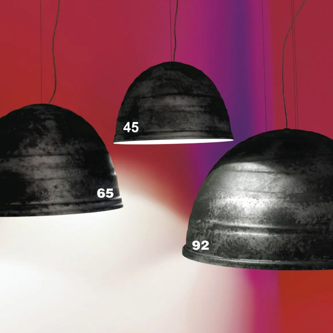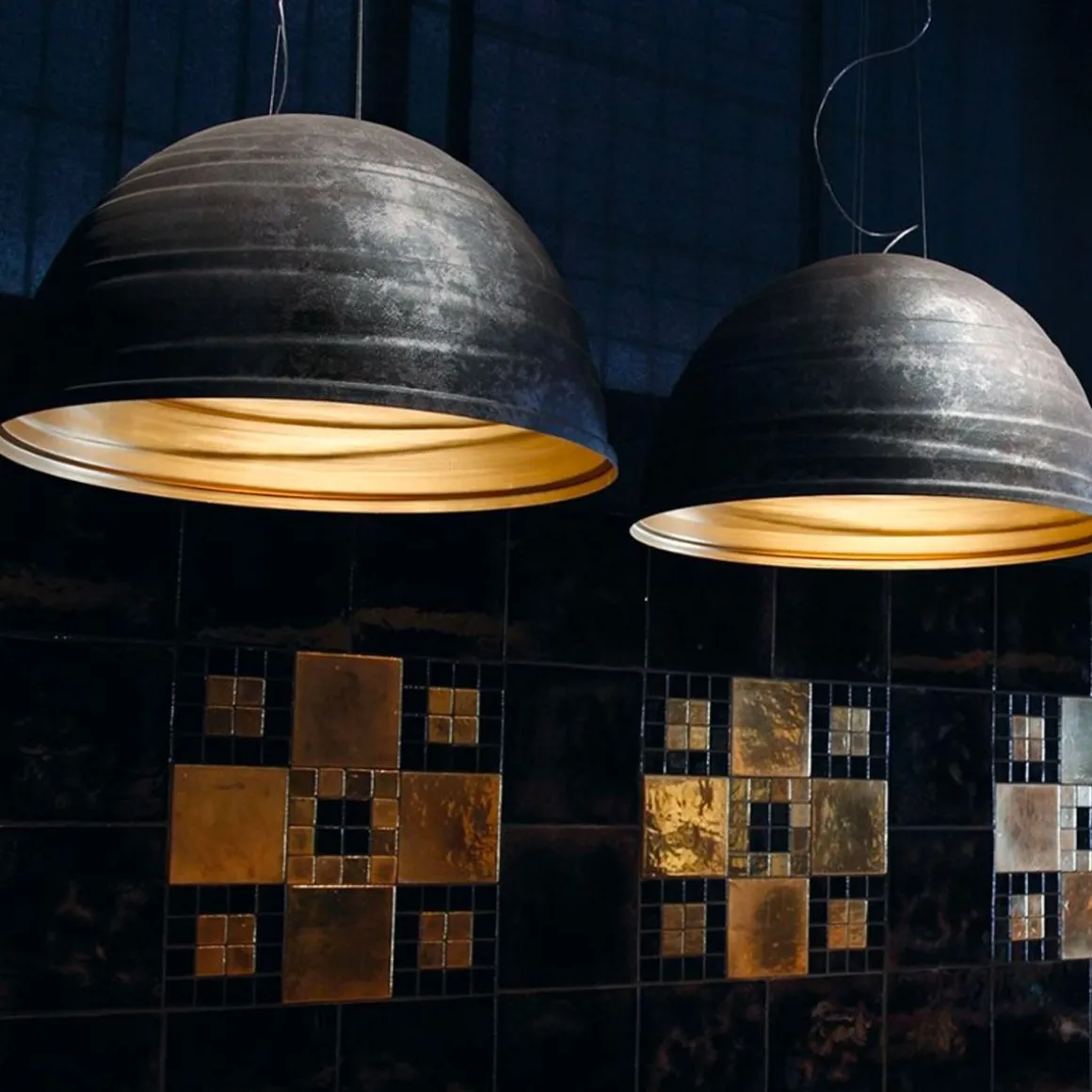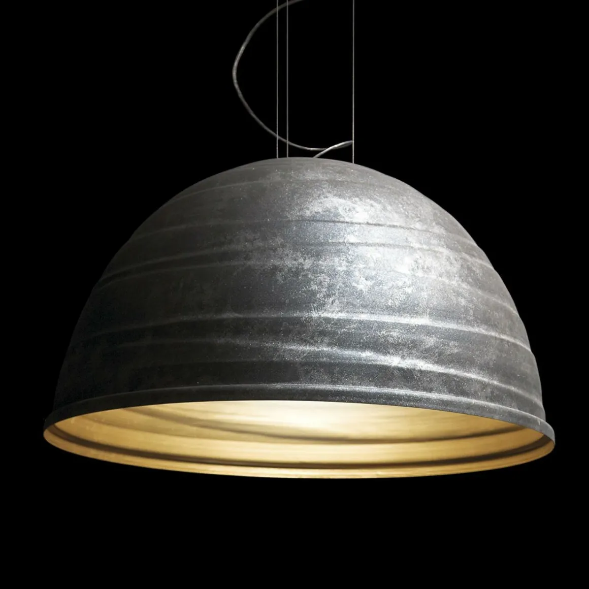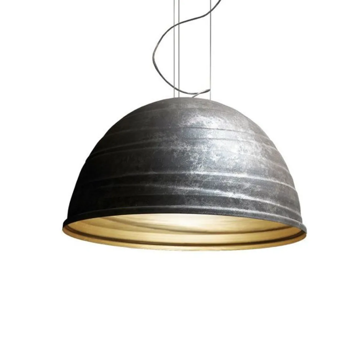 La suspension Babele a été créée par Marc Sadler en 2005 pour le fabricant intalien de luminaires Martinelli Luce. Cette lampe à lumière directe a un reflecteur en aluminum laqué micaceus et un reflecteur intérieur laqué doré.