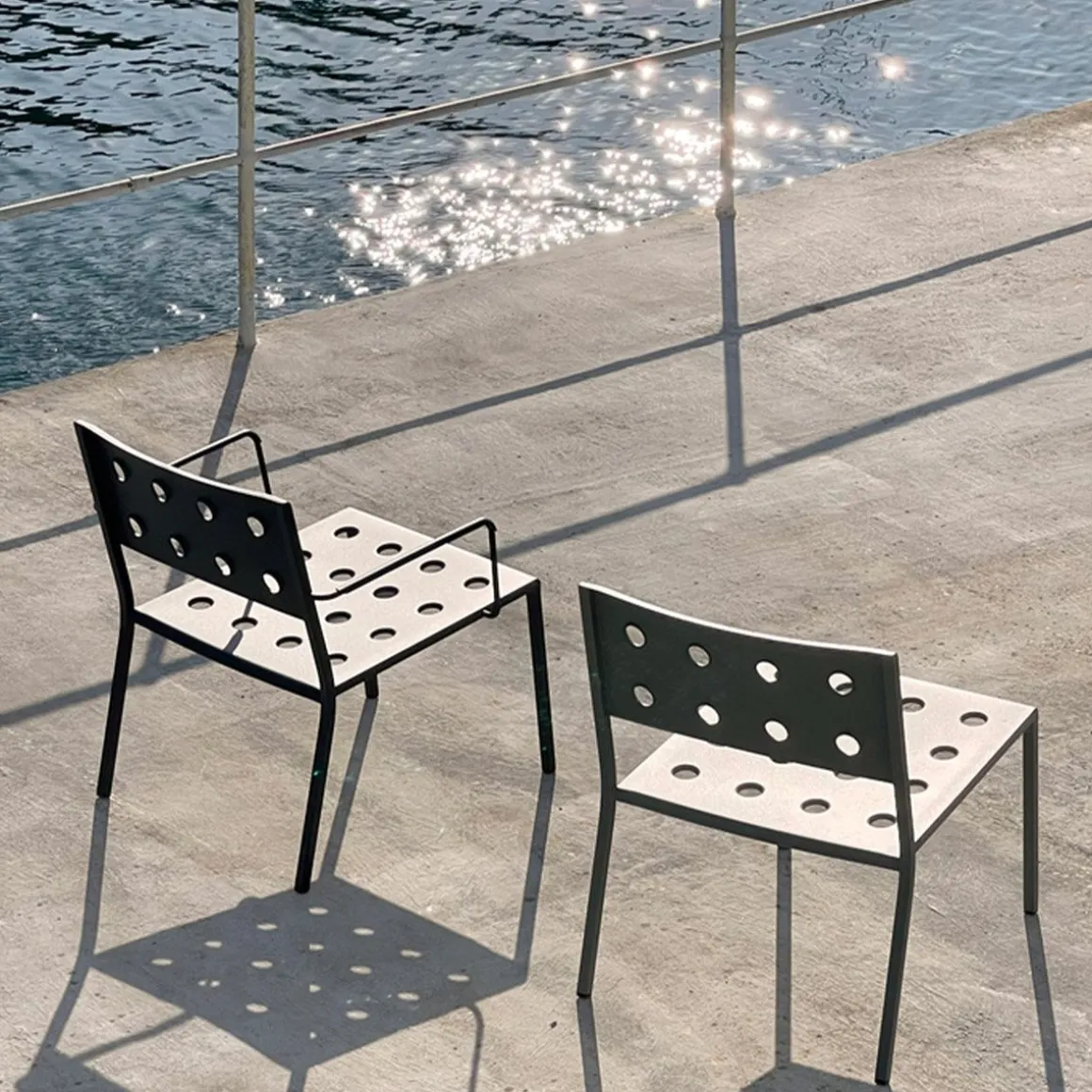 Balcony lounge armchair de Hay par Ronan et Erwan Bouroullec. Conçu pour HAY par Ronan et Erwan Bouroullec, le Balcony Lounge Armchair est un fauteuil lounge bas et confortable avec accoudoirs pour l’extérieur. Le design large et carré est adouci par le dossier arrondi et les accoudoirs élancés, les multiples trous dans l’assise et le dossier renforçant la construction, tout en créant une expression distincte. Fabriqué en acier enduit de poudre avec un apprêt extérieur pour une résistance et une durabilité optimales, Balcony est disponible dans un certain nombre d’options de couleurs différentes. La conception empilable de la chaise signifie qu’elle est bien adaptée à tous les types d’espaces, des petits balcons et terrasses aux jardins et autres grands espaces extérieurs.