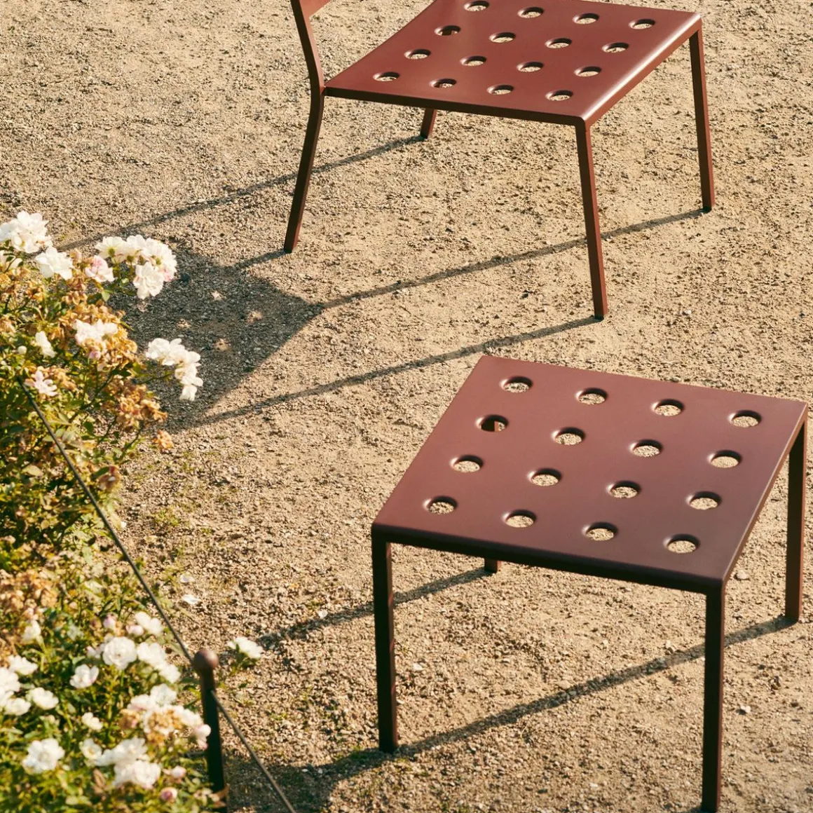 Balcony table basse de Hay par Ronan et Erwan Bouroullec. Conçue pour HAY par Ronan et Erwan Bouroullec, la table basse Balcony est une table d’appoint élégante pour l’extérieur. La conception carrée simple est adoucie par des pieds élancés, les multiples trous sur la surface de la table renforçant la construction, tout en créant une expression distincte. Fabriquée en acier enduit de poudre avec un apprêt extérieur pour une résilience et une durabilité optimales, Balcony est disponible dans un certain nombre d’options de couleurs et de tailles différentes, ce qui en fait une table polyvalente qui peut être utilisée comme siège supplémentaire ou surface de rangement dans toutes sortes d’extérieurs.