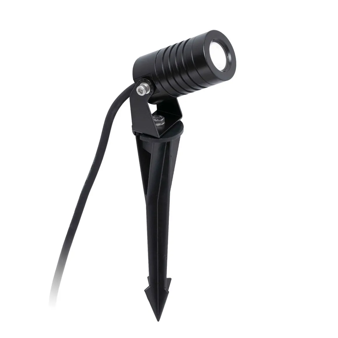 Projecteur LED avec piquet à la lumière chaude pour extérieurs en aluminium avec un diffuseur de verre transparent. La source d’éclairage est une HIGH POWER LED 3W 3000K 130Lm 30° CRI>80. Ce projecteur orientable est idéal pour l’éclairage du jardin, ils bous permettra de mettre en valeur les éléments décoratifs. Ce luminaire extérieur a un IP67, c’est un indice de protection élevé contre la pluie et les corps solides.