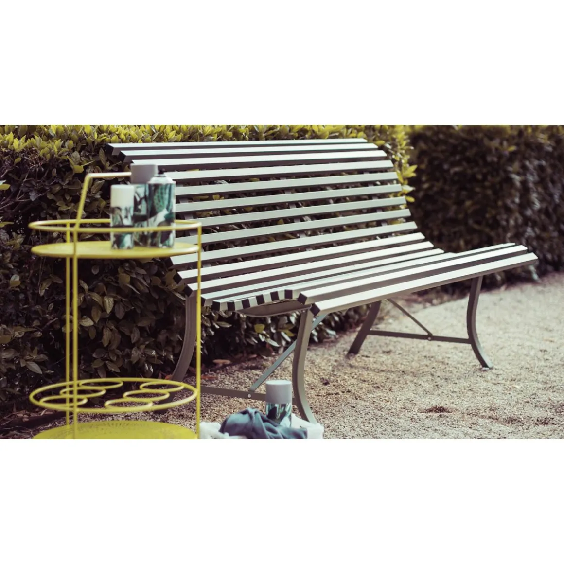 Banc Louisiane de Fermob. Avec ses 20 lattes en tube carré et sa structure en acier, ce banc Louisiane offre élégance et robustesse à votre jardin. Entre convivialité et romantisme, il vous invite à la détente et au bien être. Le banc Louisiane à reçu un traitement haute protection, pour permettre son utilisation à l’extérieur par tous les temps. Le métal est de plus peint avec une poudre anti- uv. Ses matériaux de qualité, son assise confortable et son design en font un indispensable de votre jardin.