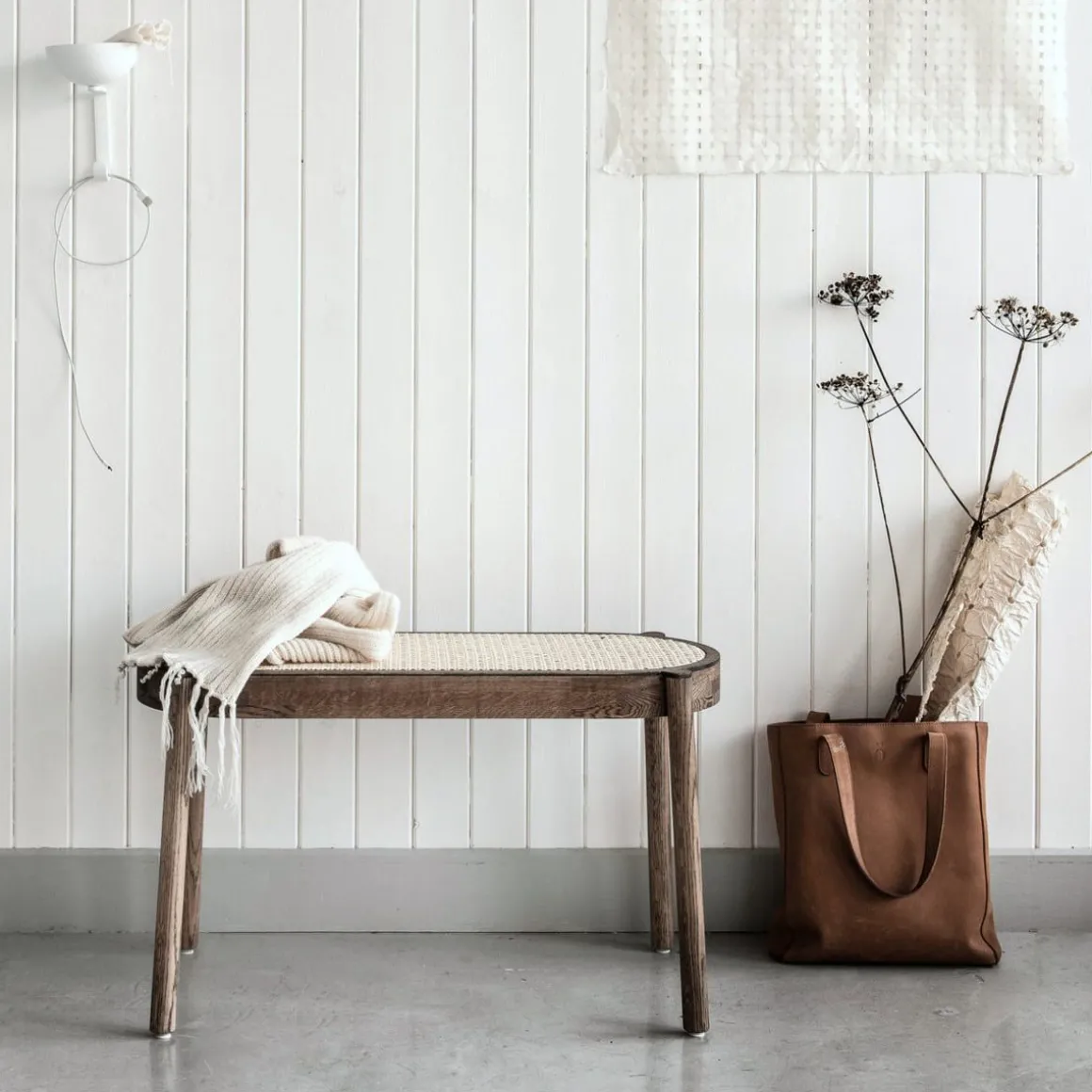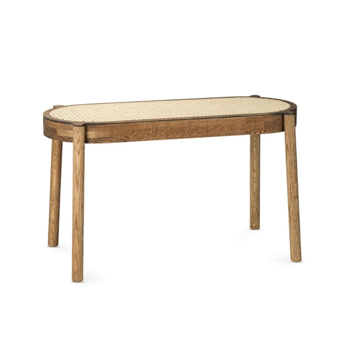 Le banc Pal est fabriqué en chêne massif et équipé d’un siège en osier doux et confortable. Le siège en osier est tissé à partir de fibres de roseau naturelles et intégré dans le cadre pour s’asseoir au niveau de la surface. Une partie du caractère de la série Pal est formée par la relation entre les matériaux naturels et les techniques artisanales, qui rendent chaque objet unique en son genre. Les pieds s’élèvent sur toute la hauteur du siège, créant un profil simple mais frappant, car ils sont placés le long du cadre plutôt que sous celui-ci.
