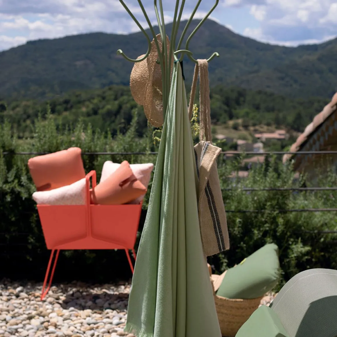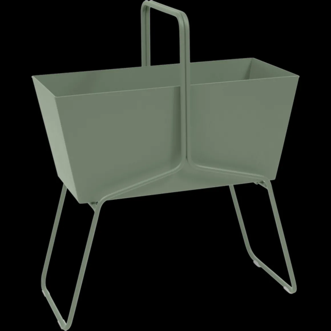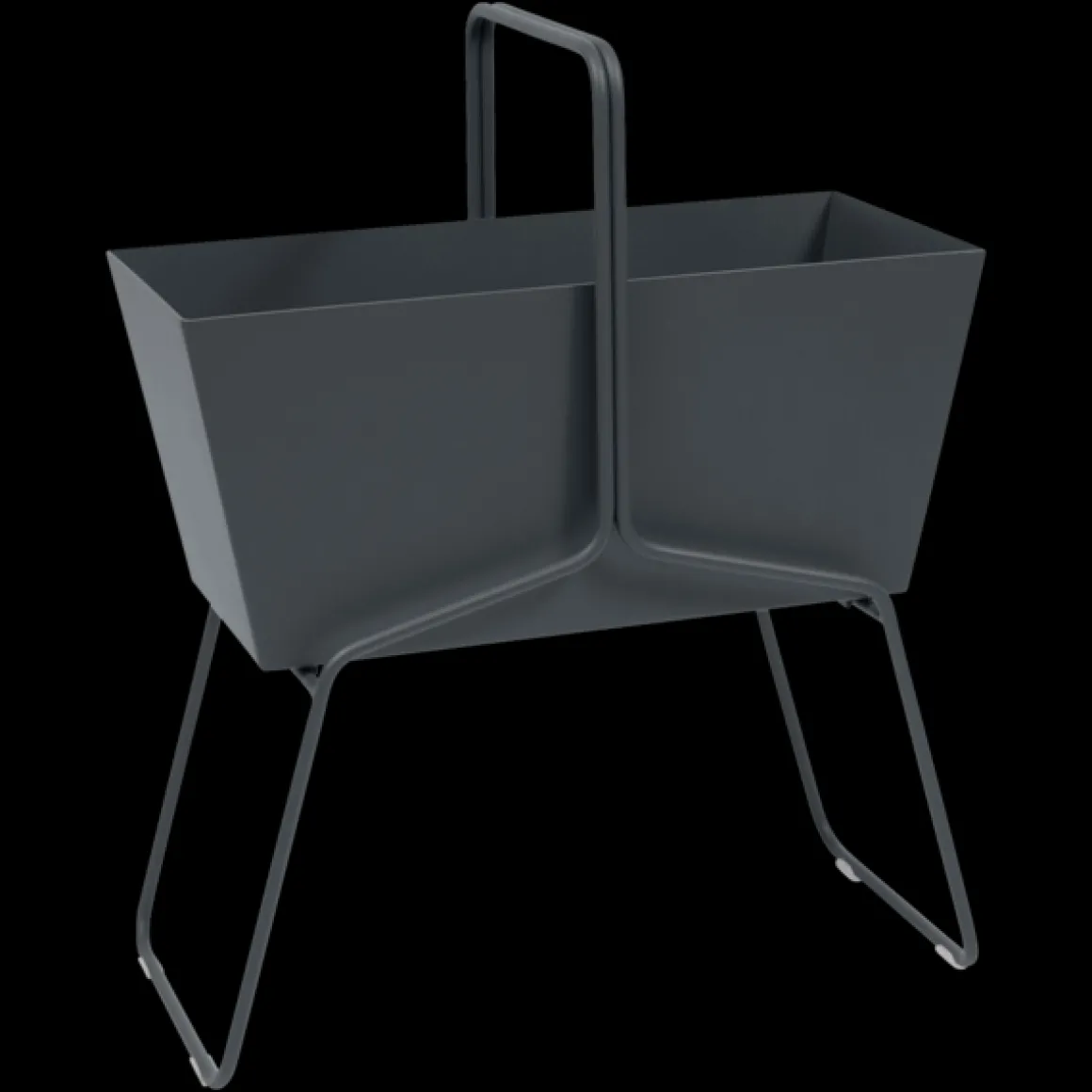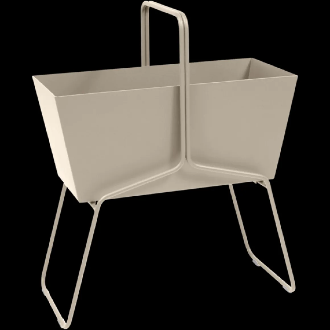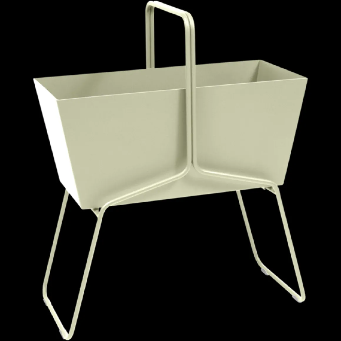 Basket Jardinière Haute de Fermob par Fabio Meliota. Ah, votre balcon… Ce précieux espace qui vous offre une parenthèse végétale en ville… Comme vous aimez regarder pousser les plantes que vous avez choisies pour l’embellir… Elles, raffolent de votre jardinière haute Basket, dans laquelle elles se sentent si bien, à portée de main et d’yeux ! Et vous en prenez soin sans vous faire mal au dos… Fabio Meliota, designer italien, a réinventé la traditionnelle jardinière sur pied, la passant au prisme du graphisme. La Basket haute s’avère ainsi aussi pratique, grâce à son système d’évacuation d’eau, que poétique et belle à regarder. Et maline aussi, quand elle sert de judicieuse alternative aux classiques séparateurs de terrasse vous permettant de créer un coin lounge et un coin repas par exemple. Sa solide structure en fil d’acier, avec pieds et poignée, soutient un bac amovible en aluminium. Tout aussi légère qu’elle est résistante, cette jardinière rectangulaire de grande taille peut être facilement déplacée pour orienter vos plantations en fonction de l’ensoleillement ! La Basket haute ? Une jardinière sur pied facile à vivre !