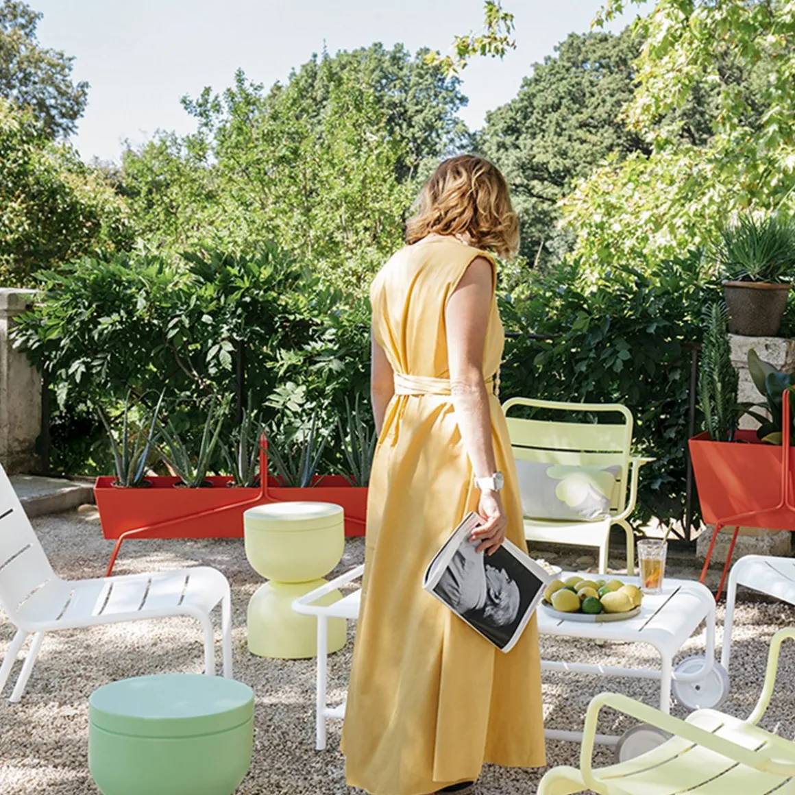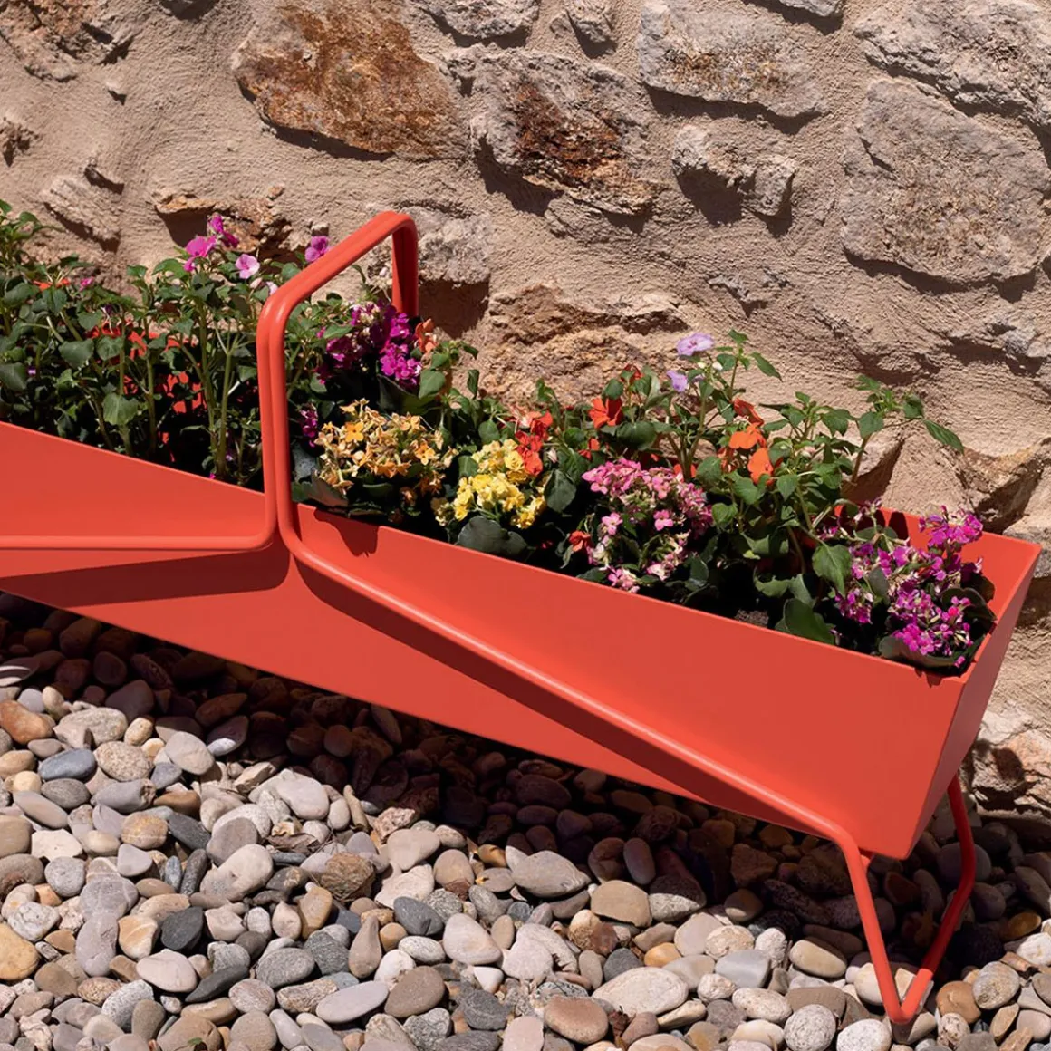 Basket Jardinière Longue de Fermob par Fabio Meliota. Ré-enchanter votre balcon, pour introduire la nature en ville… Embellir votre terrasse avec de jolies fleurs colorées ou des plants de tomates. Mettre les mains dans la terre. Et être fier de vos plantations. L’allure contemporaine épurée et la finesse des lignes de la jardinière longue Basket, signée du designer italien Fabio Meliota, vont vous séduire, à coup sûr ! Raffinée et élégante, elle va donner de l’allure à tous vos espaces extérieurs, petits ou grands. D’ailleurs, elle est si commode à transporter grâce à sa poignée que vous pouvez la balader des uns aux autres ! Conçue pour durer, avec son bac en aluminium et sa structure en acier avec un traitement anti-UV et anti-intempéries à toute épreuve, la jardinière Basket habillera vos terrasses de longues années durant. Amusez-vous à la twister, en la garnissant par exemple de coussins plutôt que de plantes aromatiques ou décoratives, pour changer… Elle peut ainsi servir de rangement astucieux et coloré !