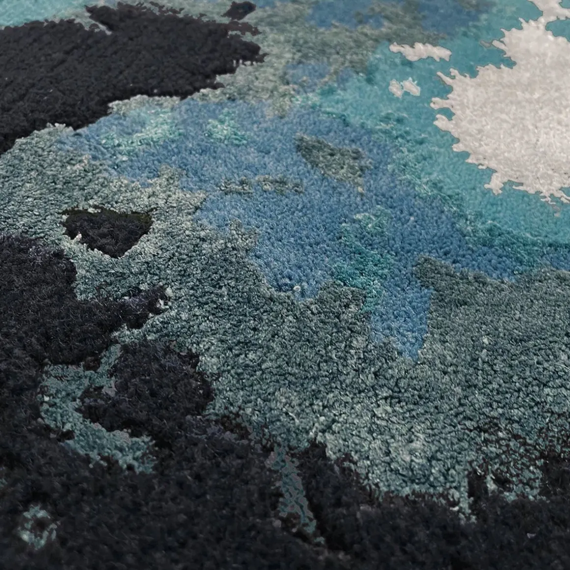 Véritable esquisse picturale, Behind se distingue par son charme et son élégance. On imagine un nuage tout en flou bleuté qui apparaît dans l’ombre de la nuit. Sa parfaite harmonie de couleurs en dégradés de bleus apporte une touche de douceur et de poésie au tapis.