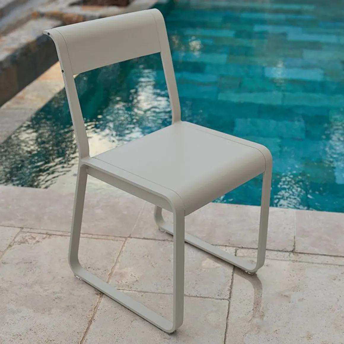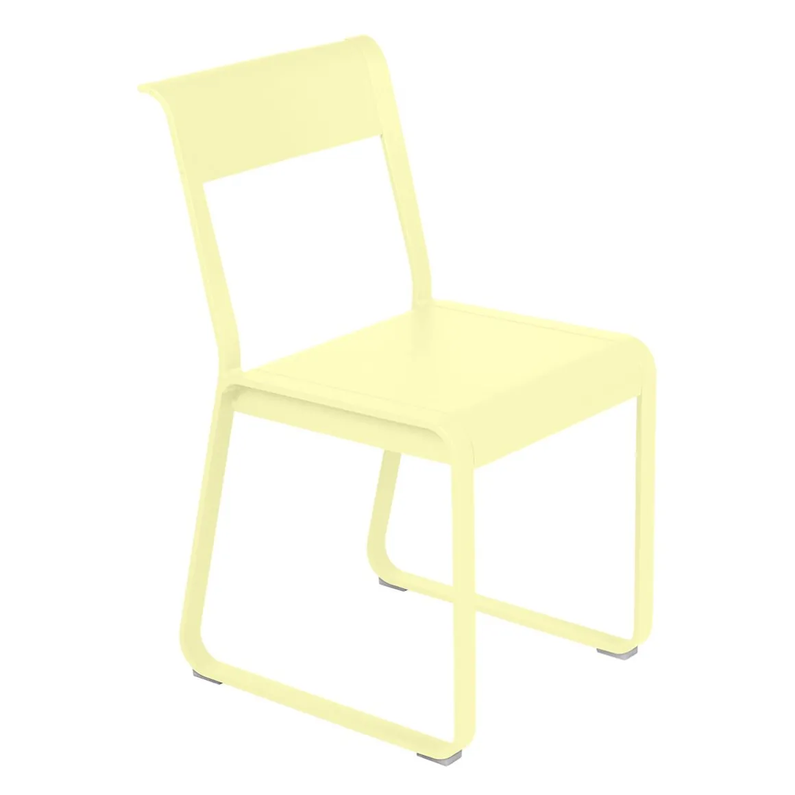 Bellevie Chaise V2 de Fermob. Dans la – très nombreuse – famille Bellevie, je demande la chaise de jardin v2 ! Elle a tous les atouts de ses sœurs, cousines et tantes : les mêmes traits – signés du studio de design Pagnon et Pelhaître – qui font écho à notre mode de vie contemporain, et de douces courbes tentantes invitant à s’y asseoir. Mais elle a une singularité : elle fera aussi le bonheur des restaurateurs à la recherche d’une chaise premium, qui se distingue par sa robustesse et sa stabilité. Imaginez-vous confortablement assis sur votre chaise Bellevie : vous profitez de votre extérieur et le soleil vous caresse la peau. Changement de décor : vous voilà assis à la terrasse de votre restaurant préféré. Dans les deux cas, vous êtes divinement bien installés sur votre chaise Bellevie… Le piètement traineau, si caractéristique de la collection Bellevie vous assure cette stabilité que vous savourez. Et grâce à lui, votre chaise ne se coincera pas dans les interstices des lattes de votre terrasse ! L’assise en acier, et la structure et le dossier aluminium, recouverts de peinture poudre polyester, assurent à votre chaise v2 de faire un pied de nez aux effets du temps. Et de ne laisser aucune chance aux intempéries de l’abîmer. Eco-conçue, elle est facilement démontable et recyclable à 100%. Est-ce tout ? Et bien non, votre chaise est entièrement fabriquée en France. Et, last but not least, ultra-séduisante !