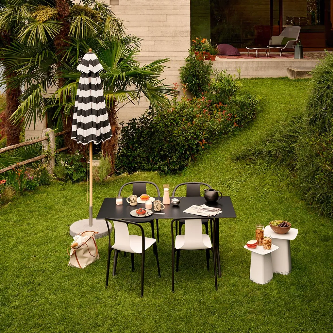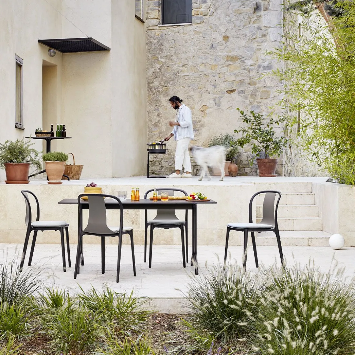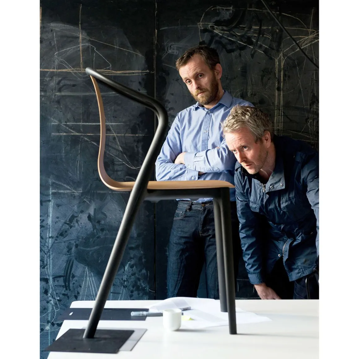 Belleville est le quartier parisien dynamique où se trouve le studio des designers Ronan et Erwan Bouroullec. Le mobilier de bistrot français classique et l’ambiance vivante de leur quartier ont été la source d’inspiration pour la Belleville Chair et les Belleville Tables – un siège en plastique inhabituel et une famille de tables dédiées aux salles à manger et aux cafétérias. La famille Belleville présente d’emblée une certaine évidence avec sa forme familière – même dans un contexte contemporain, tout en étant habitée par un côté mystérieux, un aspect quelque peu déroutant. En effet, elle ne laisse apercevoir ses matériaux, sa construction et son procédé de fabrication qu’au second regard. La Belleville Chair est un siège en plastique faisant preuve d’un grand raffinement technique, qui se compose de deux éléments : une structure porteuse et une coque d’assise. Telle une calligraphie, un cadre noir élancé dessine les pieds et le dossier du siège et accueille une coque fine qui va en s’effilant de l’assise large vers le dossier étroit. Les Belleville forment avec les Belleville Tables un ensemble homogène et pourtant varié, une famille hybride dont le langage formel et les matériaux sont harmonieusement coordonnés. Les sièges et les tables peuvent ainsi être parfaitement associés, en petit ou en grand nombre, pour aménager des bistrots animés, des galeries à la décoration plus sévère ou des appartements aux styles les plus divers.