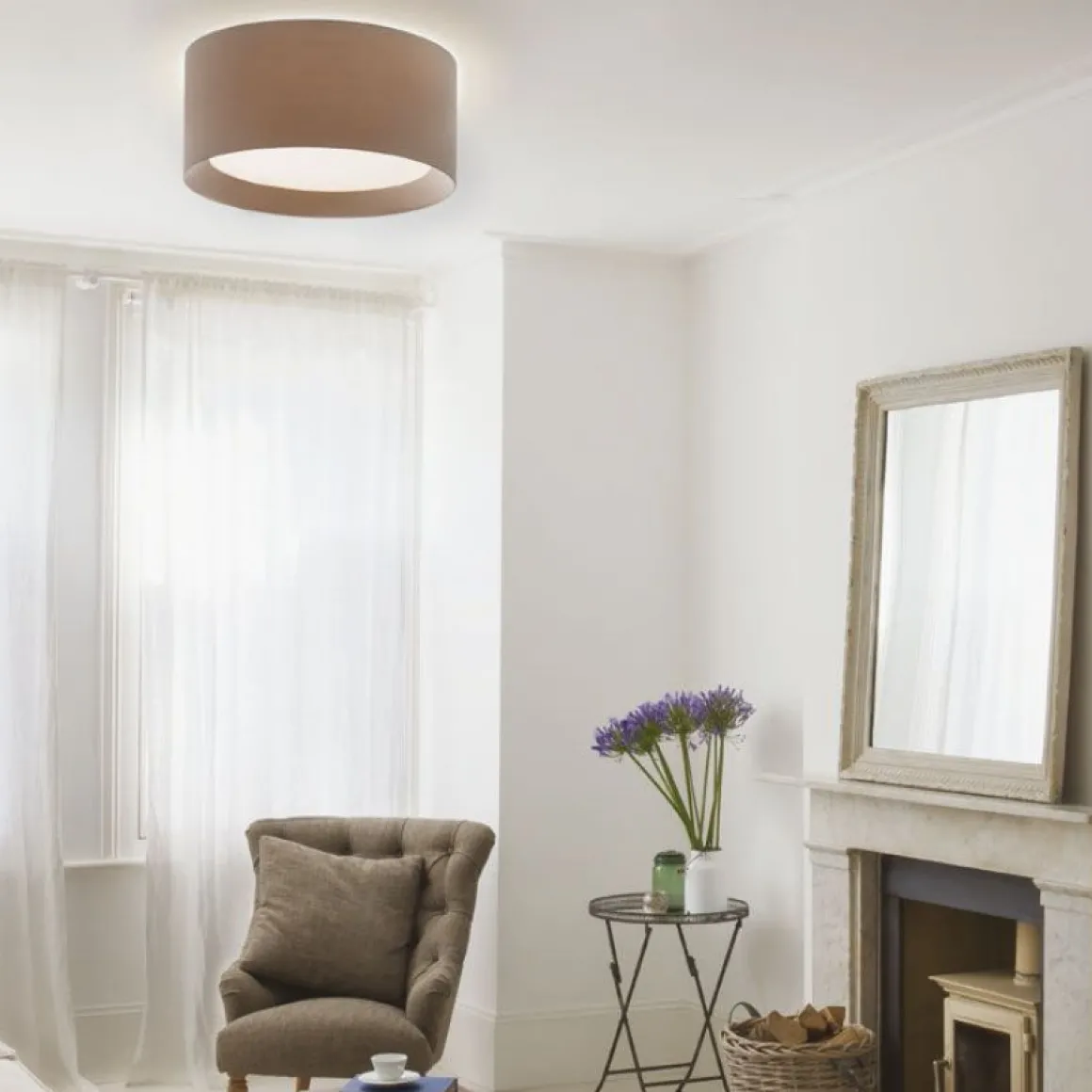 Plafonnier Bevel de Astro Lighting, composé d’une base blanche pour 3 ampoules E27 et d’un abat-jour en toile coloris blanc, noir ou beige. Ce plafonnier se mariera avec classe à votre habitat.