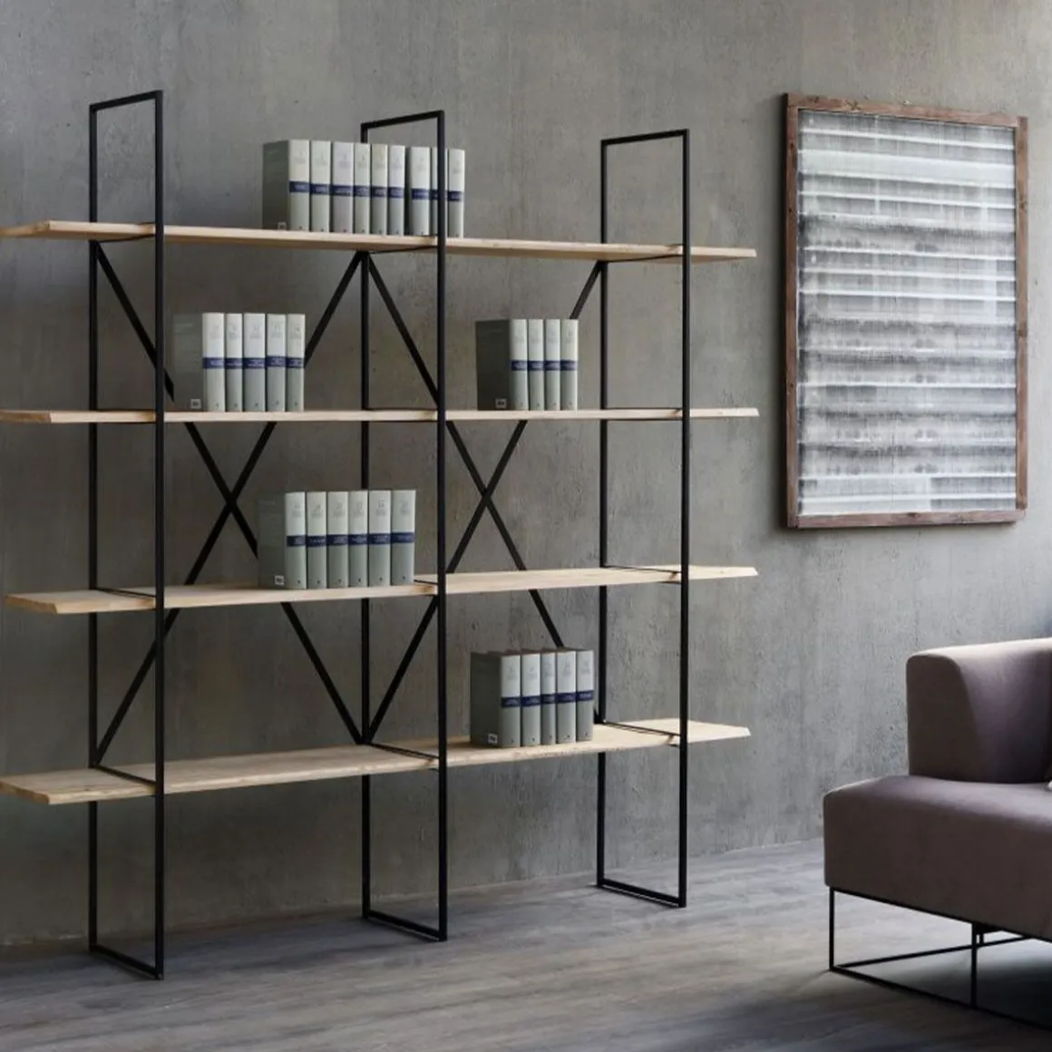 Coloris : bois naturel et structure acier noir