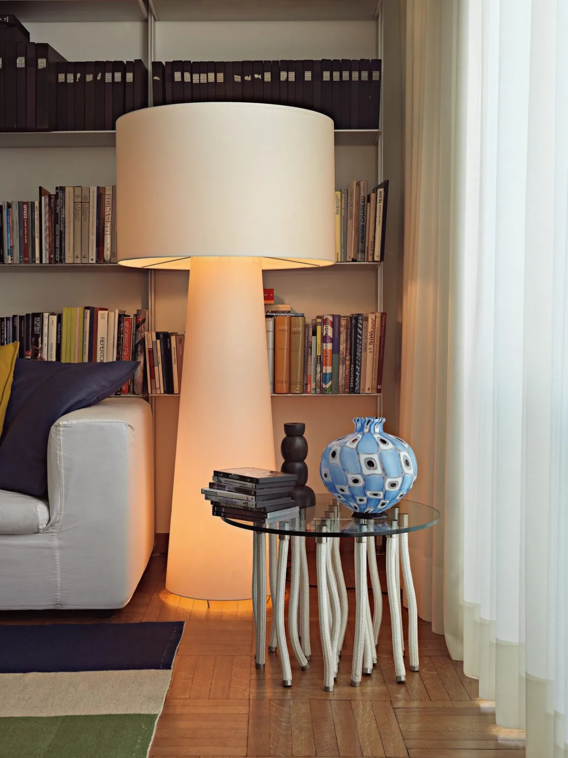 Big Shadow est un lampadaire design créé en 1998 par Marcel Wanders pour Capellini. Ce lampadaire arbore un design élégant et très structuré qui ne passe pas inaperçu et dont l’éclairage diffuse à partir de tout le corps de lampe. Il garantit une atmosphère chaleureuse dans toute la pièce. Sa structure interne est en métal, l’abat-jour est habillé de coton blanc et se décline en différentes tailles.