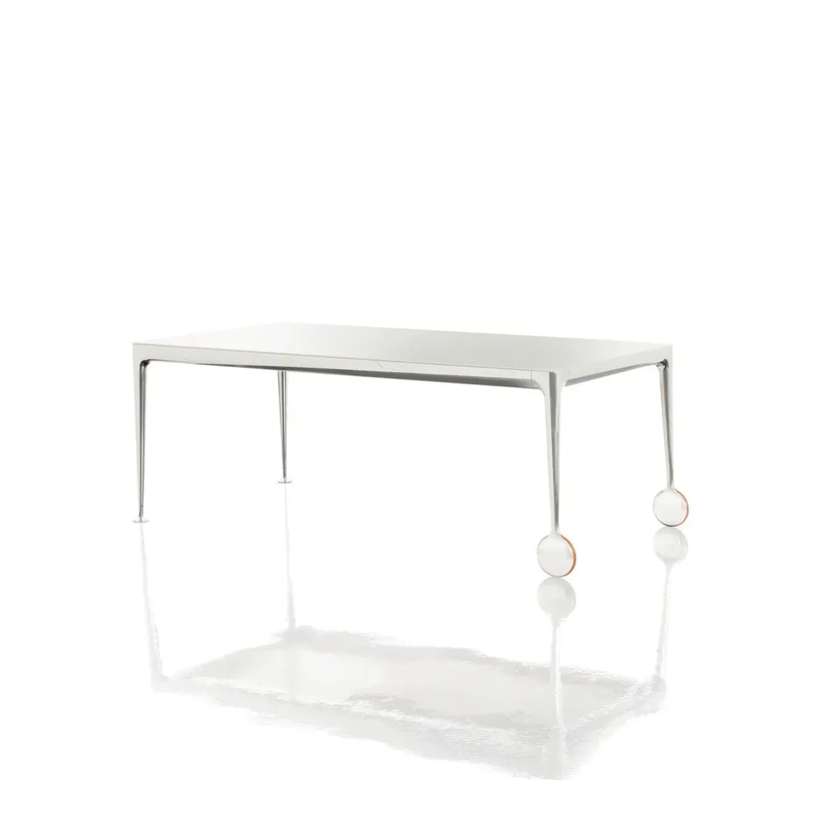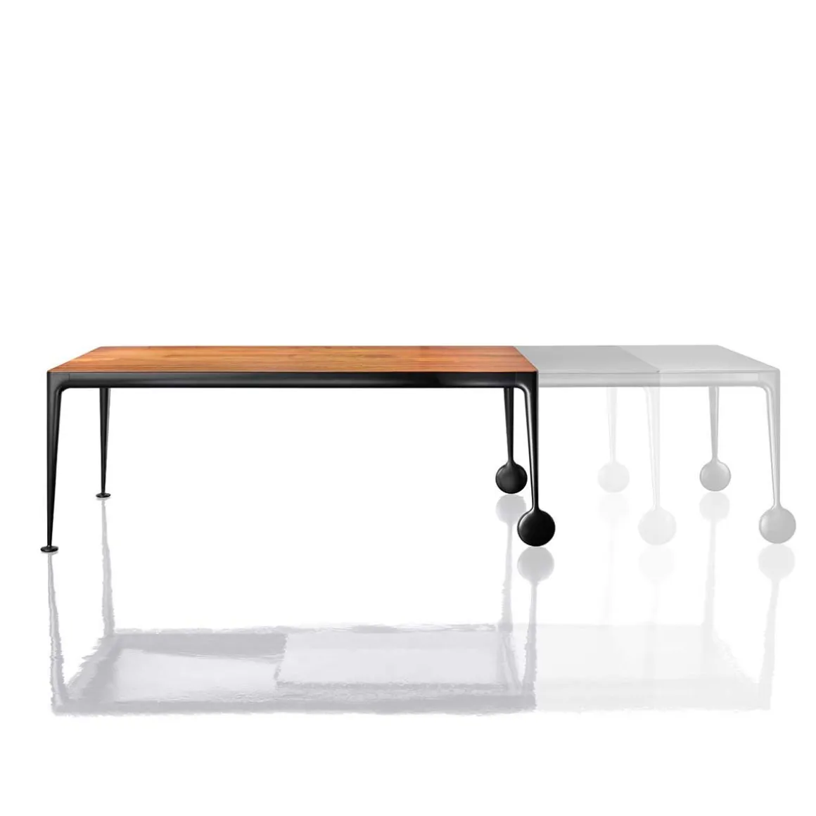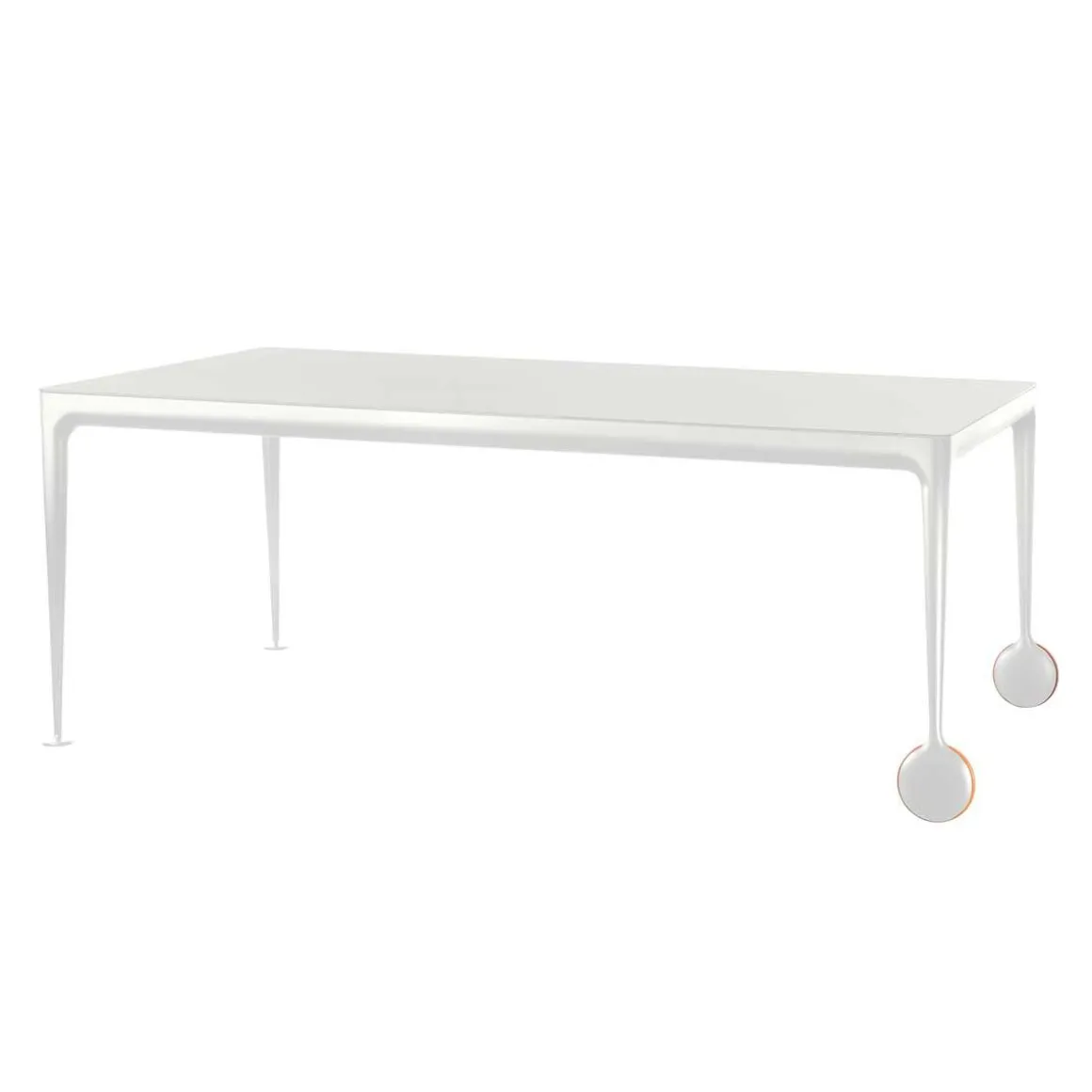 La table extensible Big Will est le nouveau chapitre d’une histoire passionnante: la rencontre entre la philosophie et la technologie Magis, avec ses formes sympathiques et ses réalisations rigoureuses, et l’esprit créatif de Philippe Starck, « star du design » au renom indiscutable. Caractérisée par la forte personnalité des roulettes – situées sur la partie extensible de la table, – et par la structure en fonte d’aluminium, poli ou verni blanc ou noir, Big Will est proposée avec plateau en verre trempé brillant ou dépoli et rallonge en MDF verni brillant ou opaque. Fermée, elle mesure 200 x 100 cm et, et grâce à deux rallonges de 50 cm chacune, elle peut atteindre la longueur totale de 3 mètres : tout cela avec un effort minime et sans devoir soulever la table du côté extensible, mais simplement en la faisant coulisser sur le sol grâce aux deux roulettes et à un mécanisme pour le coulissement et le blocage de la table développé tout spécialement et breveté. Une table importante et élégante, fruit de plusieurs années d’études et de recherches pour atteindre ce « quelque chose en plus » auquel Magis aspire depuis toujours, comme le nom même du produit le révèle.