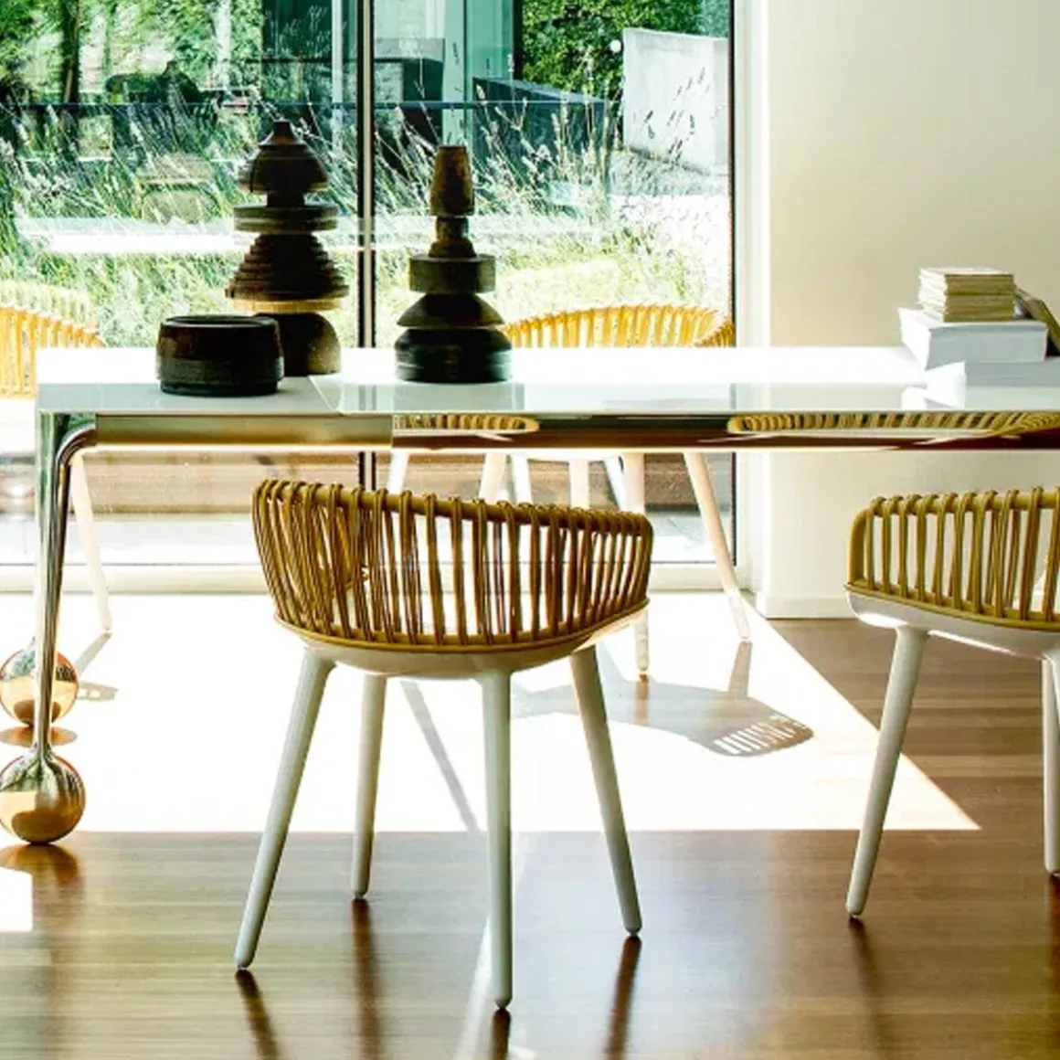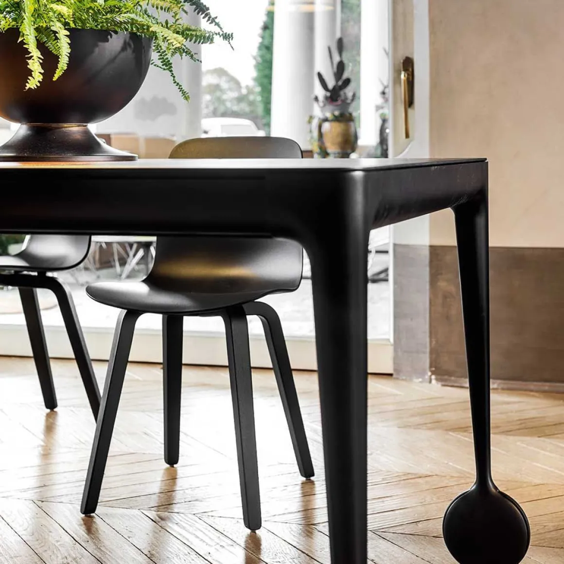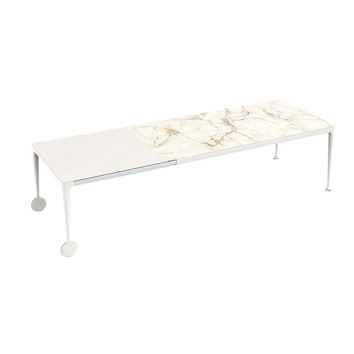 La table extensible Big Will est le nouveau chapitre d’une histoire passionnante: la rencontre entre la philosophie et la technologie Magis, avec ses formes sympathiques et ses réalisations rigoureuses, et l’esprit créatif de Philippe Starck, « star du design » au renom indiscutable. Caractérisée par la forte personnalité des roulettes – situées sur la partie extensible de la table, – et par la structure en fonte d’aluminium, poli ou verni blanc ou noir, Big Will est proposée avec plateau en verre trempé brillant ou dépoli et rallonge en MDF verni brillant ou opaque. Fermée, elle mesure 200 x 100 cm et, et grâce à deux rallonges de 50 cm chacune, elle peut atteindre la longueur totale de 3 mètres : tout cela avec un effort minime et sans devoir soulever la table du côté extensible, mais simplement en la faisant coulisser sur le sol grâce aux deux roulettes et à un mécanisme pour le coulissement et le blocage de la table développé tout spécialement et breveté. Une table importante et élégante, fruit de plusieurs années d’études et de recherches pour atteindre ce « quelque chose en plus » auquel Magis aspire depuis toujours, comme le nom même du produit le révèle.