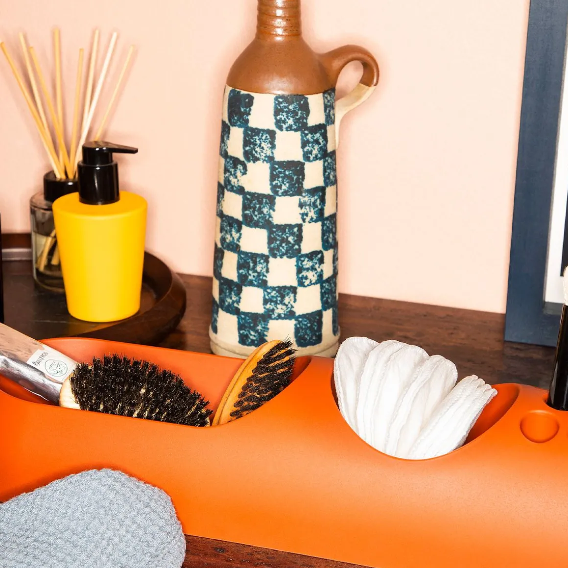 Coloris : Moutarde, gris, terracotta, océan