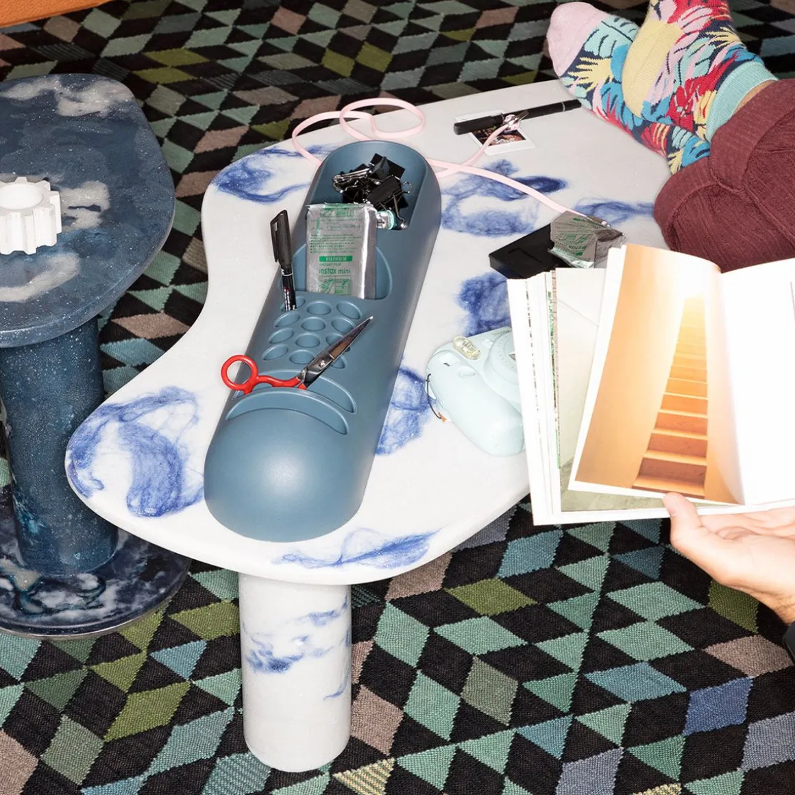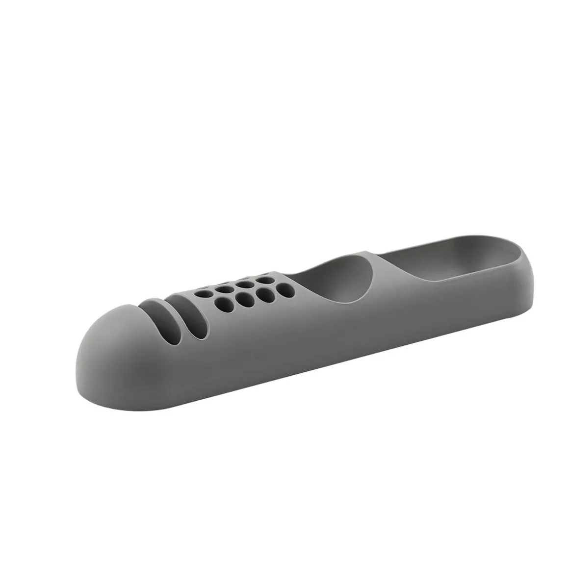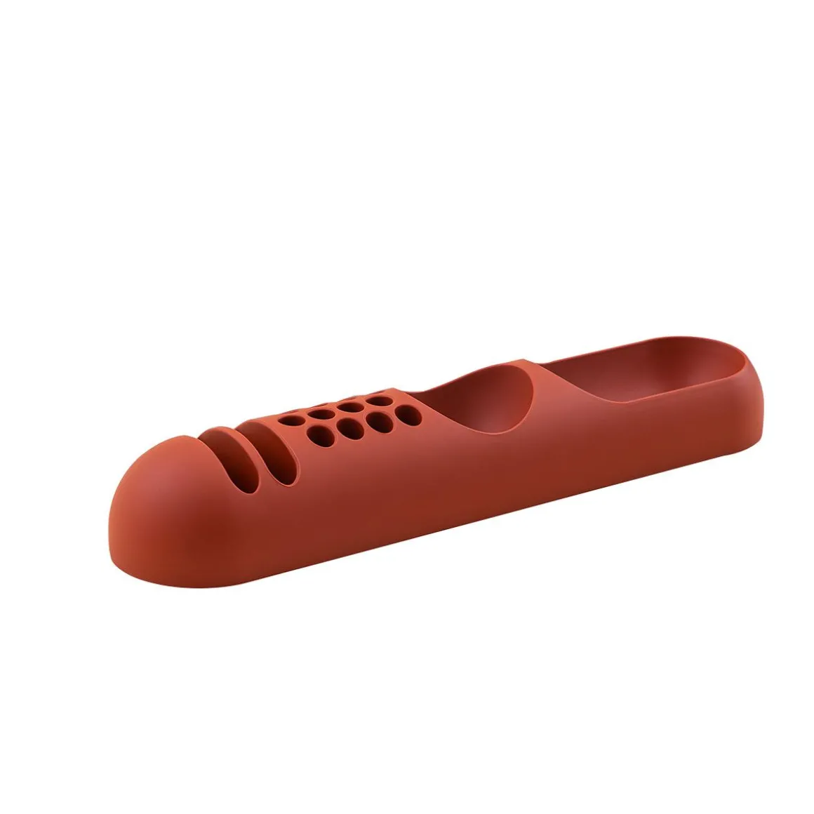 Fabriqué en gel de polyuréthane selon un design original de Joe Colombo, Bob est un meuble de rangement à fort impact matériel qui incarne le style pop art des années 60. Ironique et nonchalant, il trouve son emplacement idéal sur diverses surfaces de support grâce à ses trous mono-ouverts pratiques, mais il s’avère tout aussi fonctionnel dans divers coins de la maison grâce aux divers compartiments qui accueillent soigneusement les outils et les objets du quotidien. Le matériau flexible accentue sa valeur organique et la sinuosité des formes, le transformant en un authentique complément de design mix and match à positionner librement.