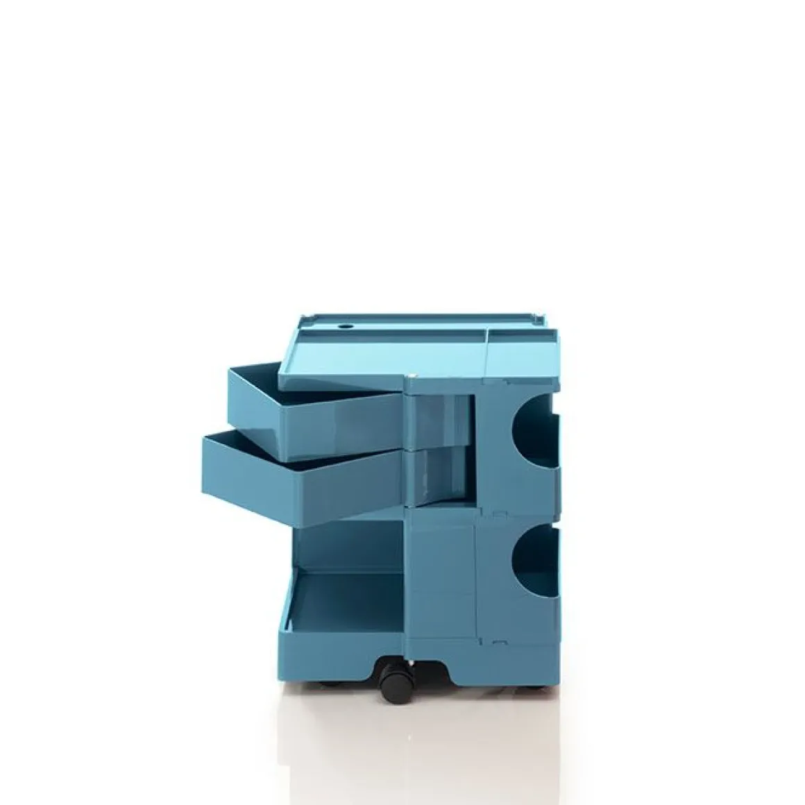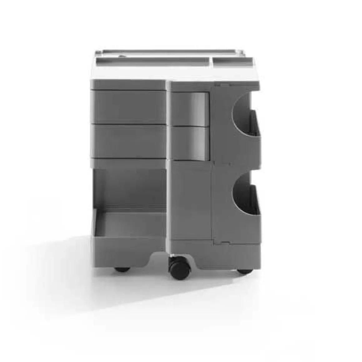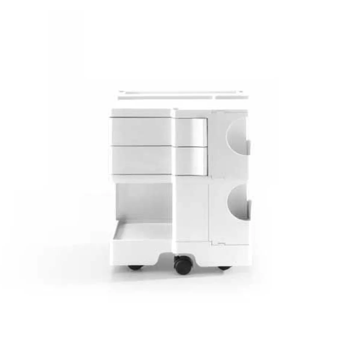 Boby est bien plus qu’un simple conteneur : c’est l’unité de stockage sur roulettes qui a fait l’histoire du design. Conçu par Joe Colombo et lancé en 1970, il a reçu le premier prix au SMAU en 1971 et fait partie de la collection permanente du MoMA et de la Triennale de Milan. La fonctionnalité et le détail sont ses points forts qui, associés à un goût indéniablement pop, continuent à en faire le chariot de rangement le plus populaire dans les secteurs de la créativité, du médical et de la maison. Conçu avec des tiroirs et des compartiments en plastique ABS moulé par injection qui garantissent des solutions simples et modulables verticalement, Boby offre une capacité de rangement polyvalente et personnalisée, tandis que ses roulettes en polypropylène garantissent une mobilité totale.