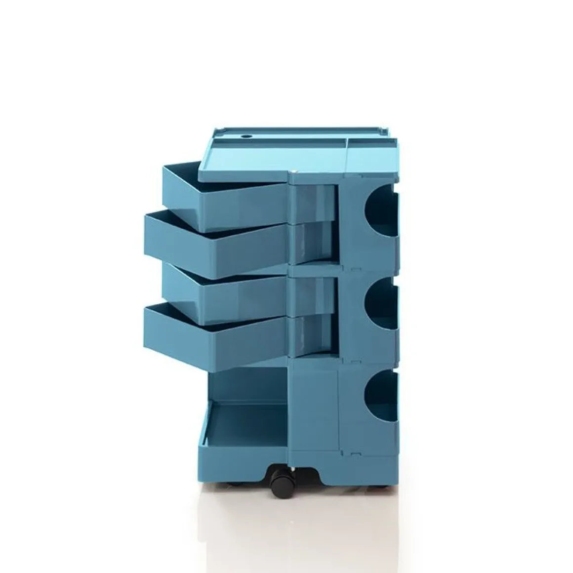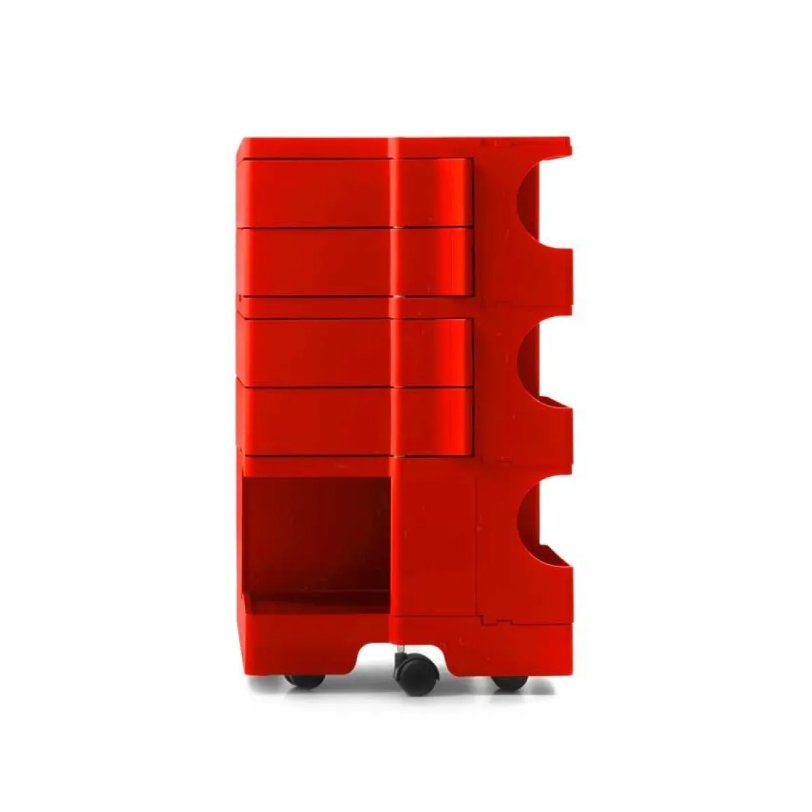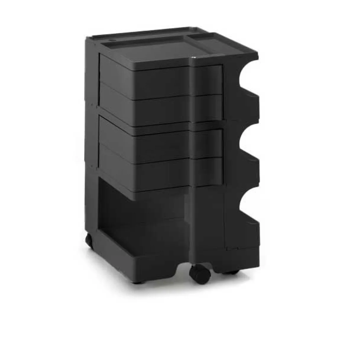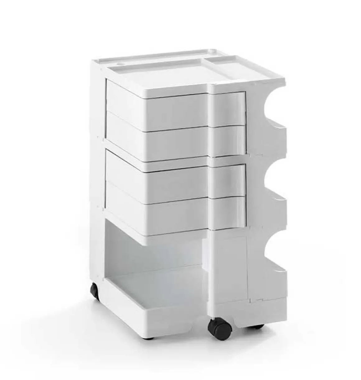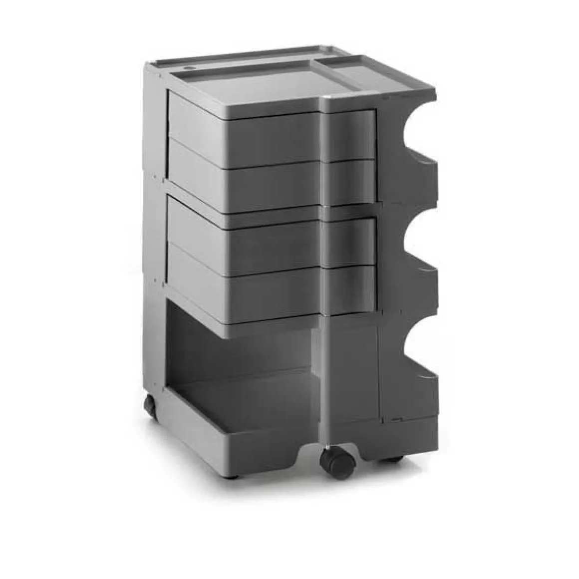 Boby est bien plus qu’un simple conteneur : c’est l’unité de stockage sur roulettes qui a fait l’histoire du design. Conçu par Joe Colombo et lancé en 1970, il a reçu le premier prix au SMAU en 1971 et fait partie de la collection permanente du MoMA et de la Triennale de Milan. La fonctionnalité et le détail sont ses points forts qui, associés à un goût indéniablement pop, continuent à en faire le chariot de rangement le plus populaire dans les secteurs de la créativité, du médical et de la maison. Conçu avec des tiroirs et des compartiments en plastique ABS moulé par injection qui garantissent des solutions simples et modulables verticalement, Boby offre une capacité de rangement polyvalente et personnalisée, tandis que ses roulettes en polypropylène garantissent une mobilité totale.