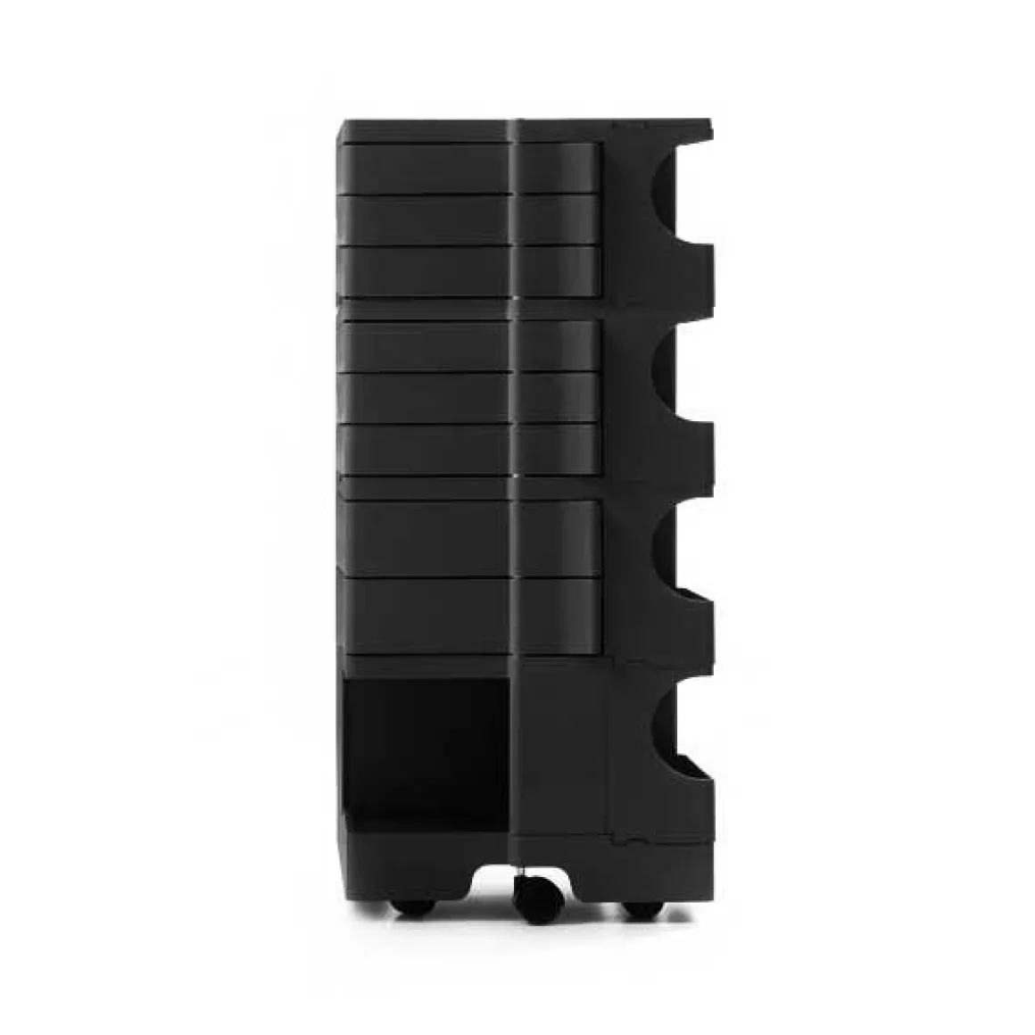 Boby est bien plus qu’un simple conteneur : c’est l’unité de stockage sur roulettes qui a fait l’histoire du design. Conçu par Joe Colombo et lancé en 1970, il a reçu le premier prix au SMAU en 1971 et fait partie de la collection permanente du MoMA et de la Triennale de Milan. La fonctionnalité et le détail sont ses points forts qui, associés à un goût indéniablement pop, continuent à en faire le chariot de rangement le plus populaire dans les secteurs de la créativité, du médical et de la maison. Conçu avec des tiroirs et des compartiments en plastique ABS moulé par injection qui garantissent des solutions simples et modulables verticalement, Boby offre une capacité de rangement polyvalente et personnalisée, tandis que ses roulettes en polypropylène garantissent une mobilité totale.