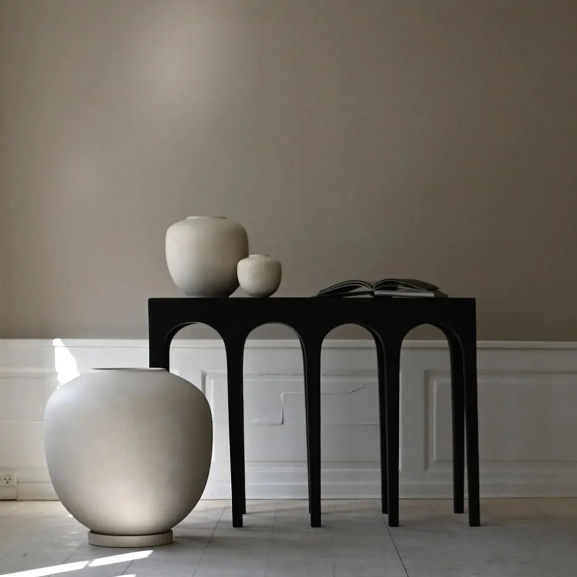 La série Bow incarne un design intemporel, rappelant la grandeur architecturale des aqueducs romains antiques et la précision géométrique classique. Avec sa succession d’arches, cette collection offre une silhouette élégante et sophistiquée, à la fois sobre et imposante. Les pieds allongés confèrent élégance et légèreté, défiant la prestance imposante de ces pièces. Fabriquée en béton fibré léger, la série Bow présente non seulement une surface texturée distinctive, mais aussi une portabilité accrue. Chaque pièce est méticuleusement peinte à la main en plusieurs couches, garantissant une finition durable et résistante. Cette collection comprend deux tailles de consoles et un banc, offrant des options polyvalentes qui s’intègrent parfaitement à tout espace intérieur. Imaginée par les esprits visionnaires de Kristian Sofus Hansen et Tommy Hyldahl, la série Bow allie harmonieusement forme et fonction, consolidant son statut d’élément marquant du design contemporain.