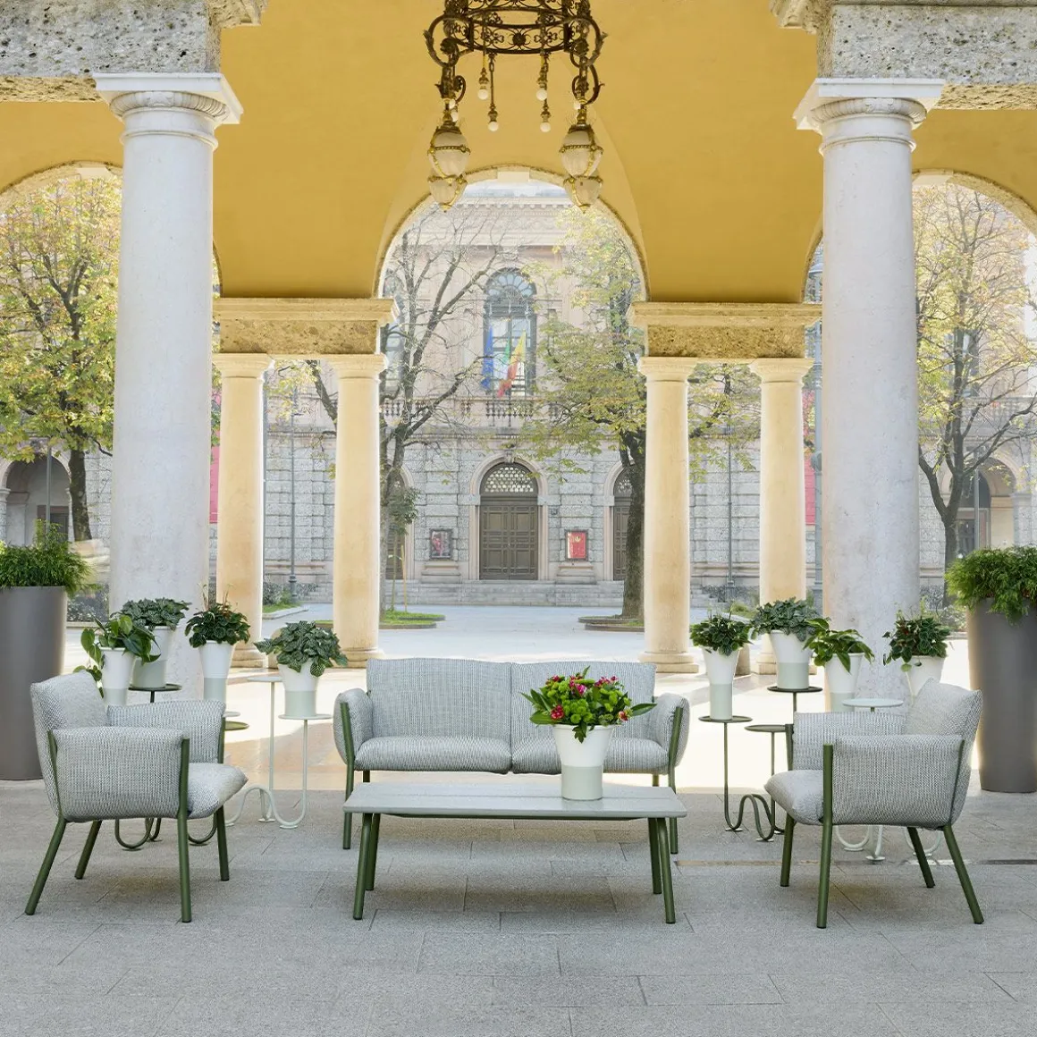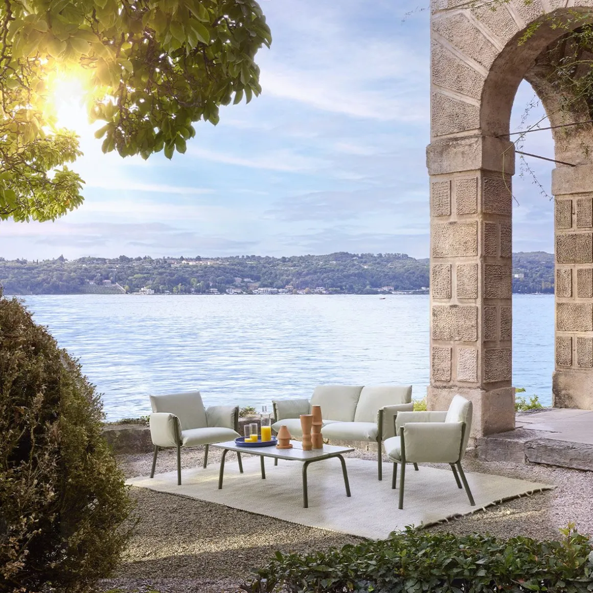 La famille de sièges d’extérieur Brezza s’agrandit avec deux nouvelles pièces, une chaise longue et un canapé deux places. Tous deux héritent de l’approche de production de leur prédécesseur : les coussins souples sont fixés au cadre sans colle, boutons, fermetures éclair ou velcro, facilitant ainsi le démontage et le remplacement, conformément au principe de circularité de la conception.
