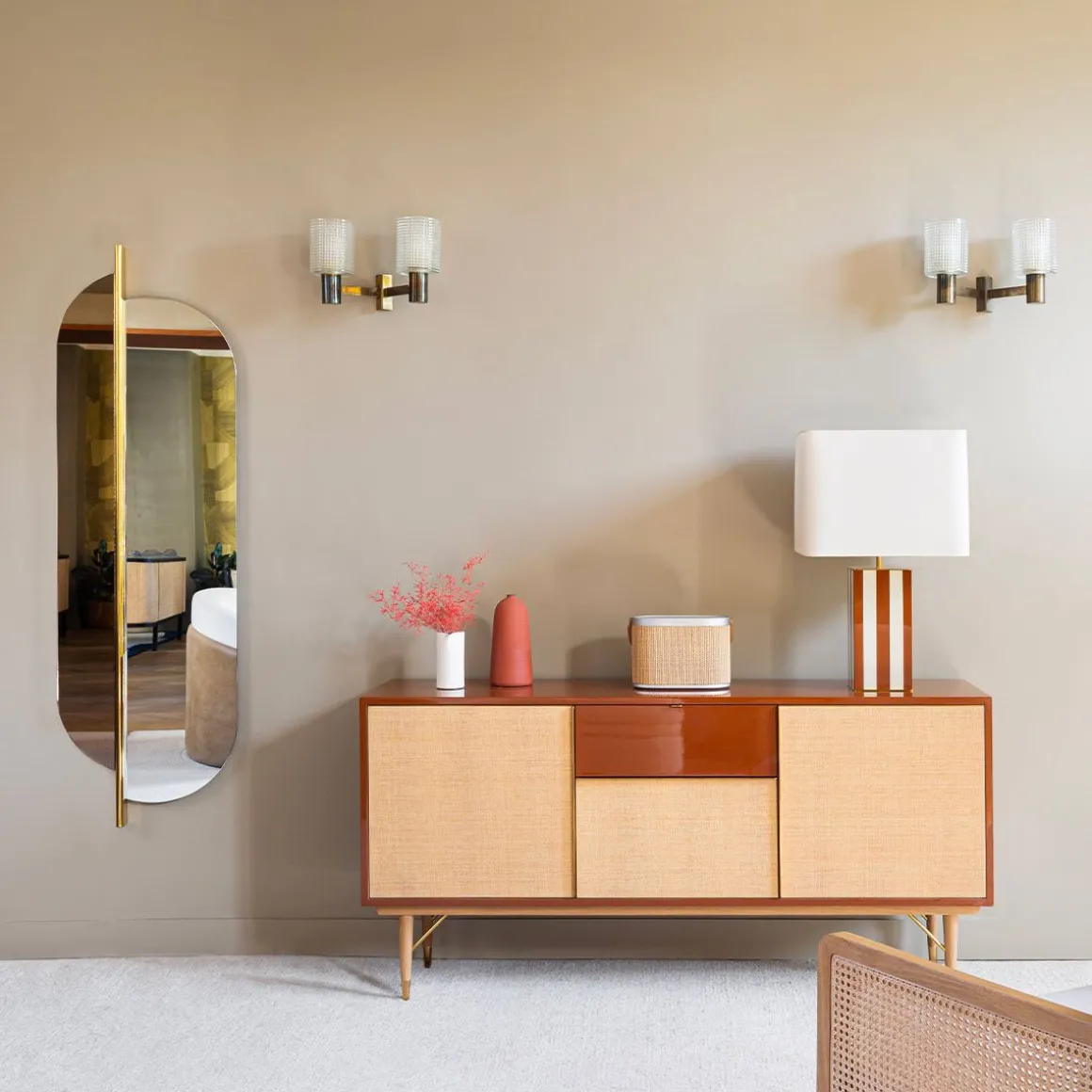 Chicissime et élancée, l’enfilade Capri a le choix du « dress code ». Fibres tissées se marient au miroir ou à la laque noire pour une tenue « Black Tie » sophistiquée. Pour les oiseaux de jour la fibre naturelle se marie également à une laque ivoire pour une tenue « casual » qui ne manque pas de panache. Que cet élégant meuble ne dise pas qu’il n’a rien à se mettre !