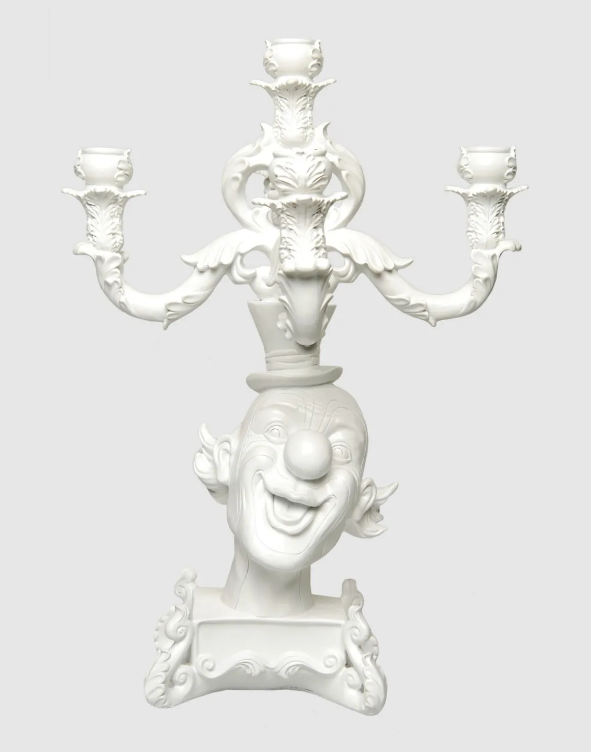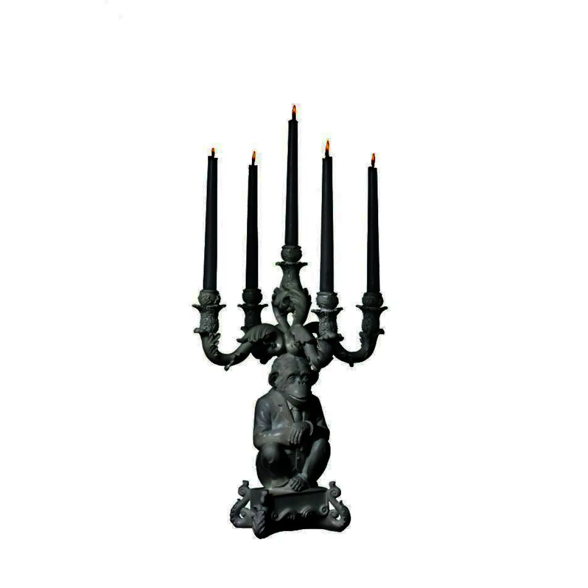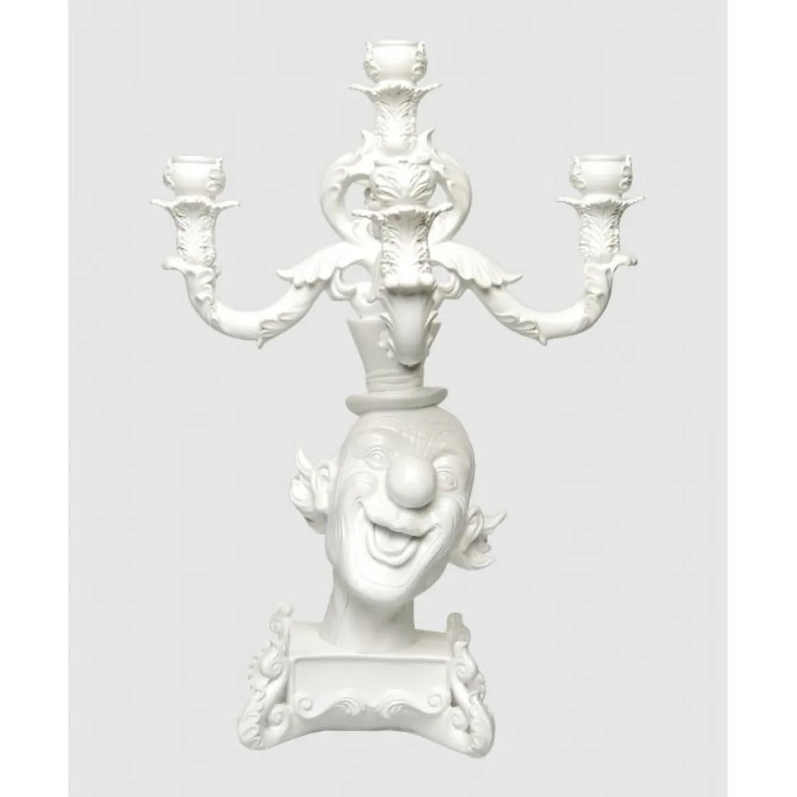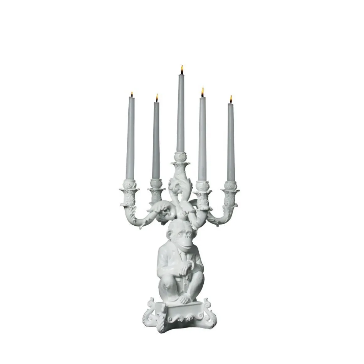 Ce chandelier à 5 branches de Seletti est baroque et surréaliste. La résine a remplacé le laiton, le marbre ou la porcelaine ; les volutes et feuillages en reliefs sont aux antipodes du minimalisme actuel. Les motifs qui composent le corps du chandelier sont loin des standards traditionnels du XVIIIe siècle. Une création contemporaine atypique !
