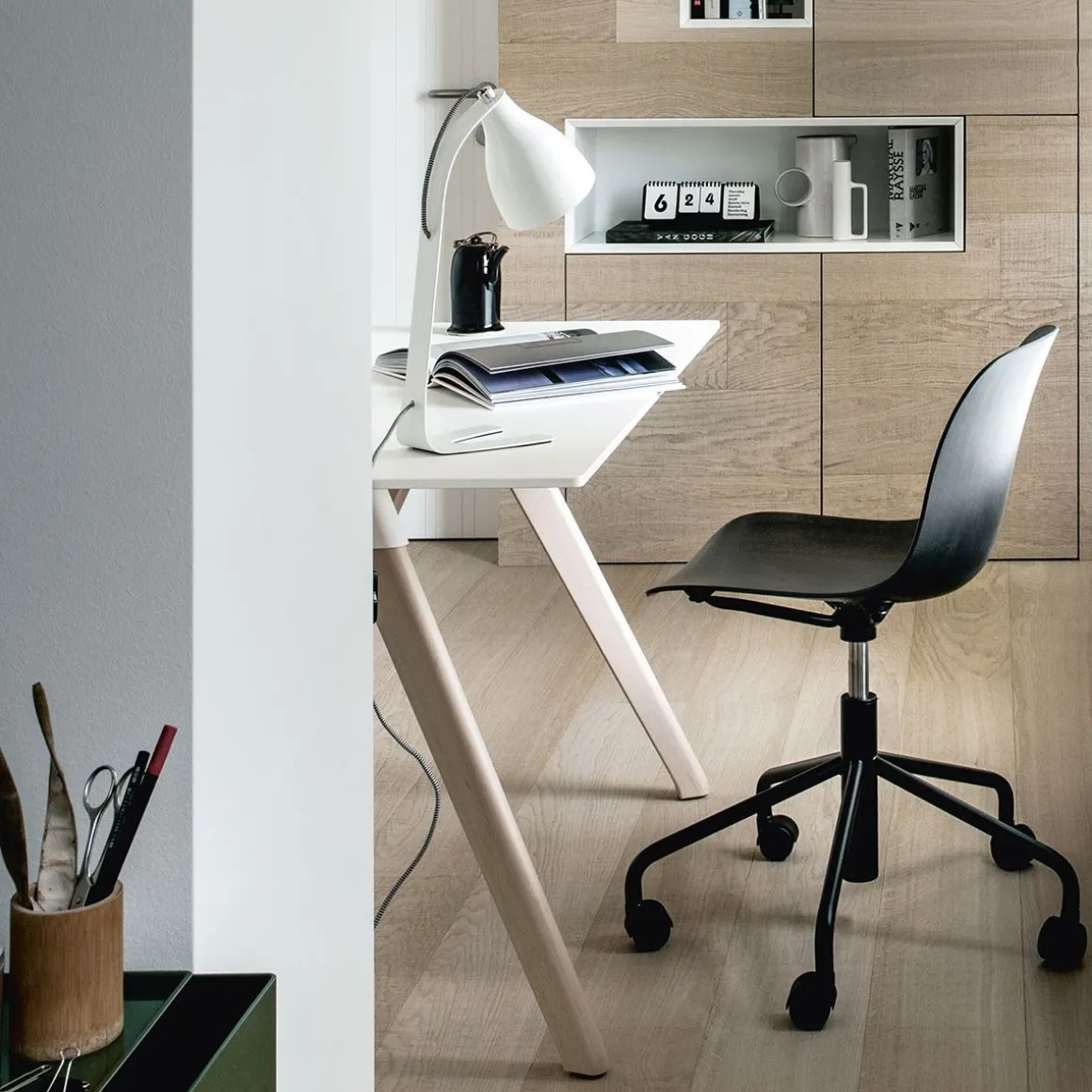 Couleur : pieds en bois clair 7011 et plateau noir 8510 ou blanc 8500
