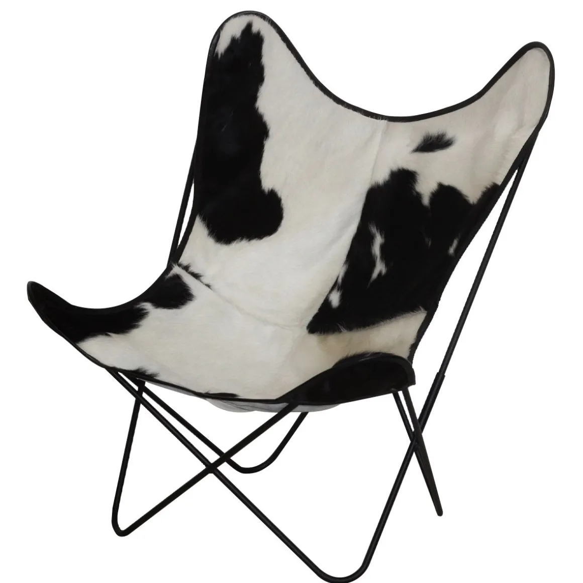 A l’intérieur, le fauteuil AA Butterfly cuir « peau de vache » séduit par la pureté et le modernisme de son design, ainsi que par son caractère totalement intemporel. Se souciant aussi bien de la forme que de la fonction, il offre en outre un confort total et procure un sentiment inégalé de bien-être et de relaxation. La version peau de vache trouvera ses quartiers aussi bien dans un univers résolument design que dans un chalet de montagne ou un intérieur cosy. Robuste, mais extrêmement souple, elle allie classe et confort, et ne pourra que vous séduire.