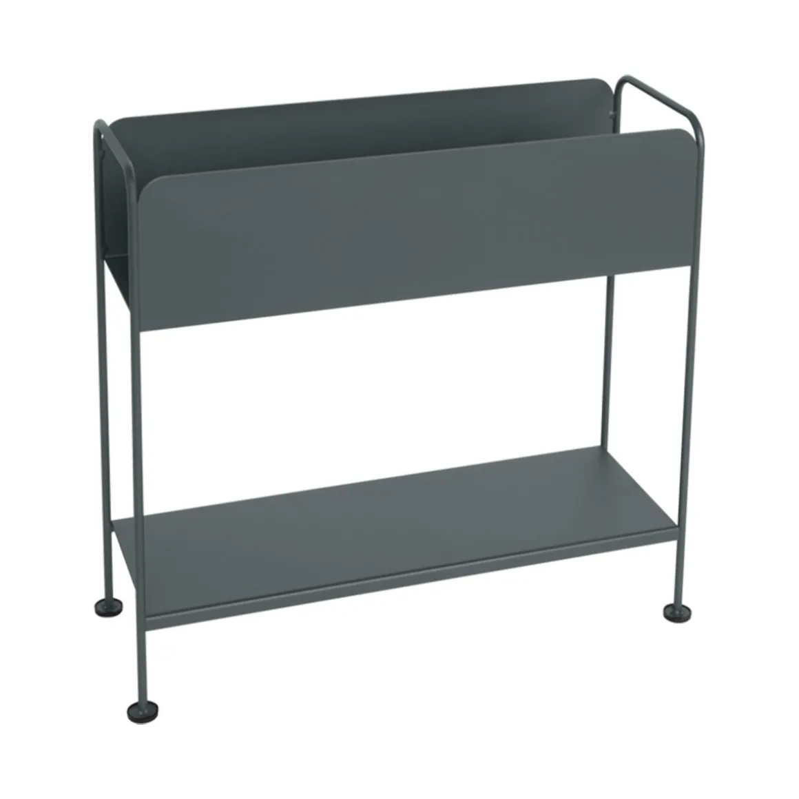 Cache pot Picolino de Fermob. Qui a dit qu’on ne pouvait pas joindre l’utile à l’agréable ? Chez Fermob, on craque pour la tendance de l’esthétique fonctionnelle. Dans la grande famille des meubles d’appoint, on demande le cache-pot Picolino : un petit mobilier léger, maniable et passe-partout. Pour vous faciliter la vie à l’extérieur comme à l’intérieur, et toujours avec style ! Attention, must-have en vue ! Comme à son habitude, le Studio Fermob compte bien nous séduire avec le cache-pot Picolino. Un bac de rangement et une étagère en tôle acier sont montés sur une structure fil acier pour composer cette étagère en métal. Mais il serait trivial de penser qu’il ne s’agit là que d’un simple cache-pot sur pied. Avec son bac de rangement en « U » et son étagère tellement pratiques, il joue les caméléons. Tantôt porte-revues, tantôt porte-bouteilles, il peut également se métamorphoser en une bibliothèque d’appoint, une desserte ou encore une étagère décorative. On attend avec impatience de le voir se prêter à tous les usages que vous lui imaginerez… La sobriété du pliage de la tôle tout comme la minutie du cintrage du fil confèrent à la structure d’ensemble une allure résolument contemporaine. La finesse des lignes de sa structure filaire va de pair avec une légèreté de prise en main. Résultat ? Le cache-pot Picolino se transporte de l’extérieur à l’intérieur au gré de vos envies et sans effort. L’avantage d’un design aussi simple et efficace est qu’il peut s’autoriser toutes les fantaisies chromatiques. Ce n’est pas un hasard si le cache-pot Picolino se décline dans l’intégralité des coloris du nuancier Fermob. Toutes les teintes lui vont à ravir. Le plus dur sera encore de choisir…
