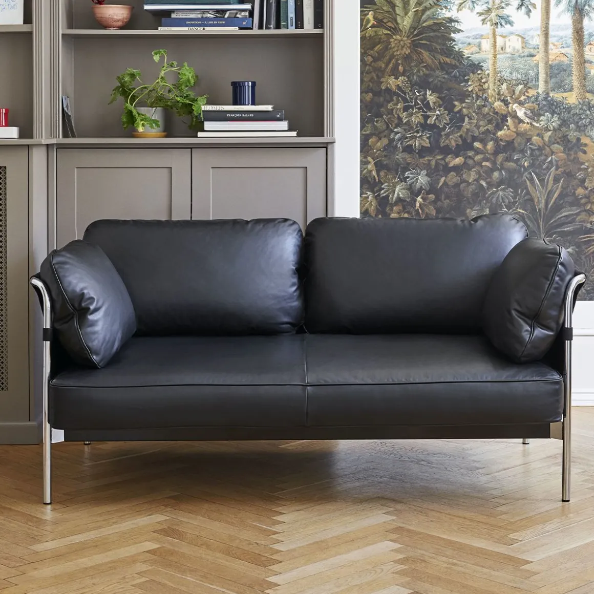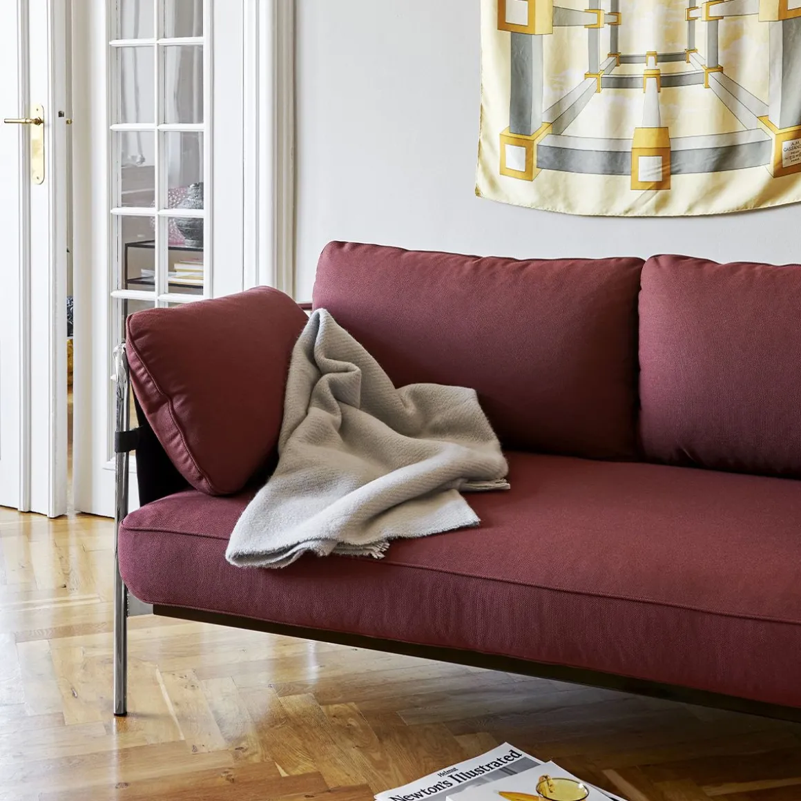 Can 2.0 canapé 2 places de Hay par Ronan et Erwan Bouroullec. Avec le canapé Can, Ronan et Erwan Bouroullec cherchent à aller au-delà de la création d’un design pratique, élégant et confortable. L’intention est de revigorer l’idée même du canapé, d’un objet intrinsèquement compliqué à un objet simple, détendu et accessible. Le canapé est emballé à plat et peut être facilement assemblé à la maison à partir de trois éléments de base : structure, couverture et coussins.