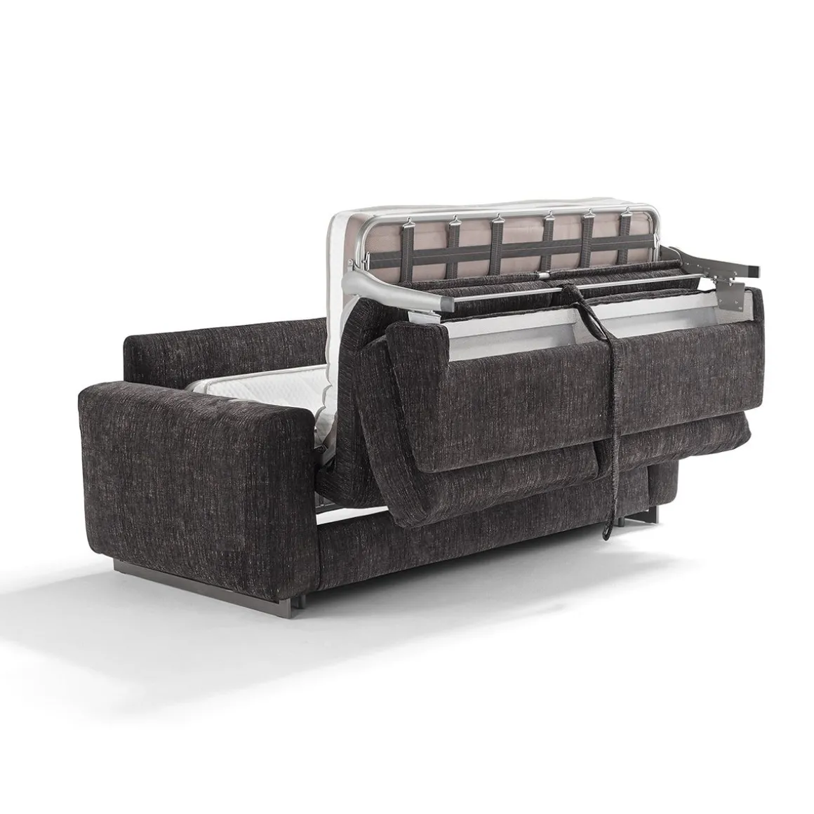 Canapé-lit convertible avec maille électrosoudée, système d’assise avec sangles élastiques, matelas de 16 cm d’épaisseur, mécanisme avec porte-oreiller. L’ouverture se fait par un seul mouvement de rotation frontale du dossier, il n’est pas nécessaire de démonter les pièces et ou la tapisserie pour passer de la position canapé à la position lit.