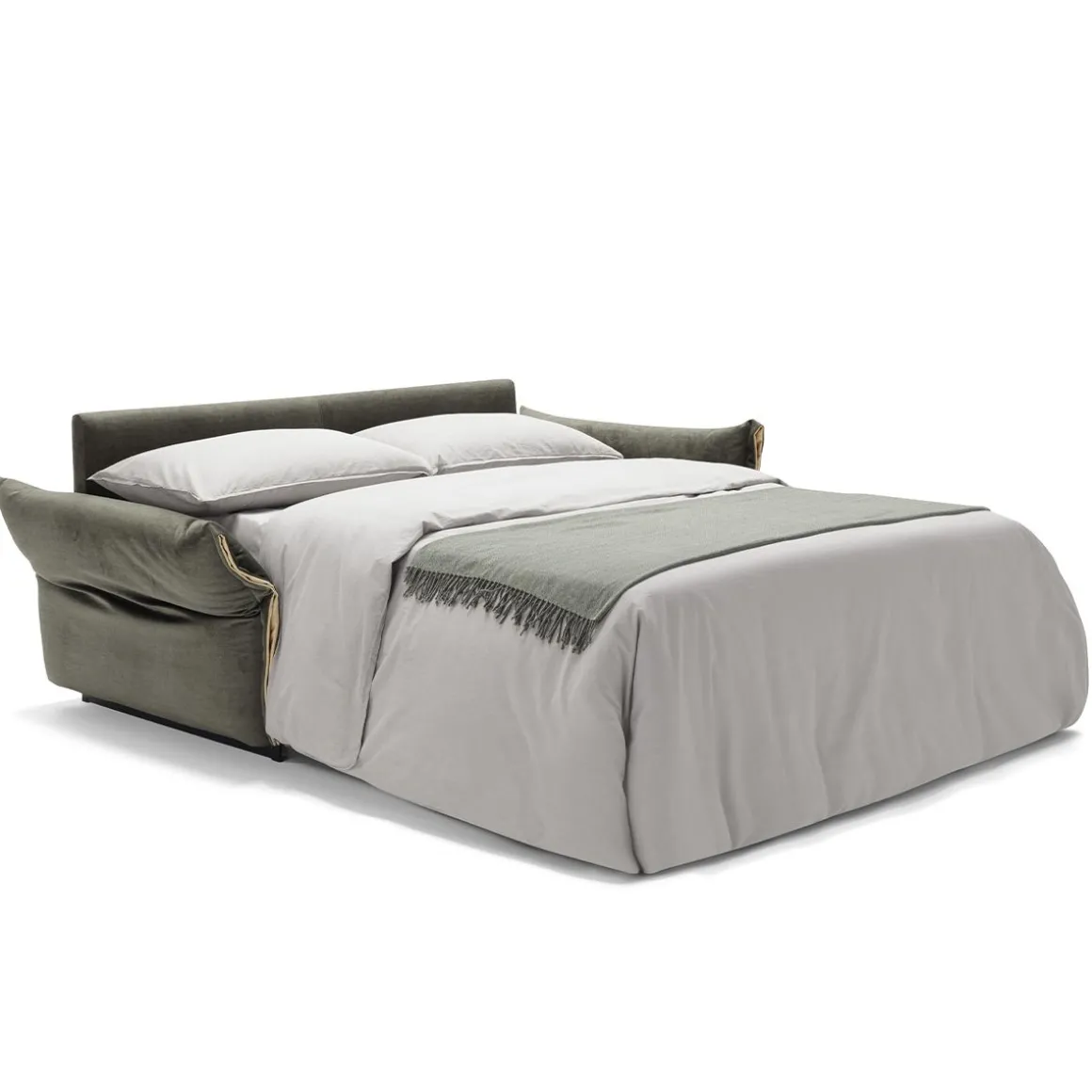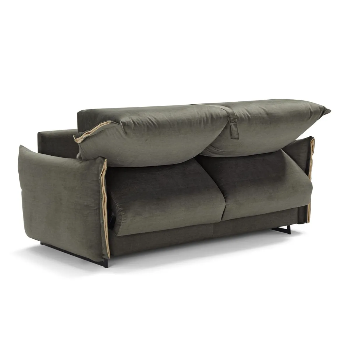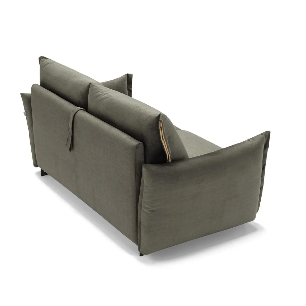 Canapé-lit convertible avec sommier électrosoudé, assise avec sangles élastiques, pieds de 8 cm de hauteur, matelas de 16 cm de hauteur et mécanisme avec range oreillers. L’ouverture se fait par un seul mouvement de rotation frontal du dossier, et la transition de la position canapé à la position lit ne nécessite aucun retrait des pièces assemblées et/ou de rembourrage du produit.
