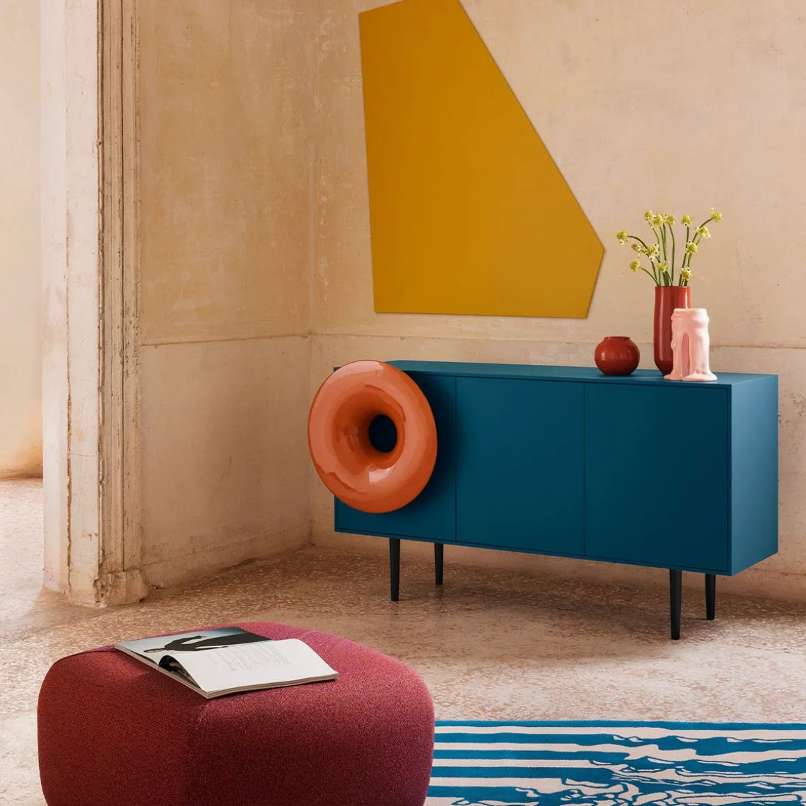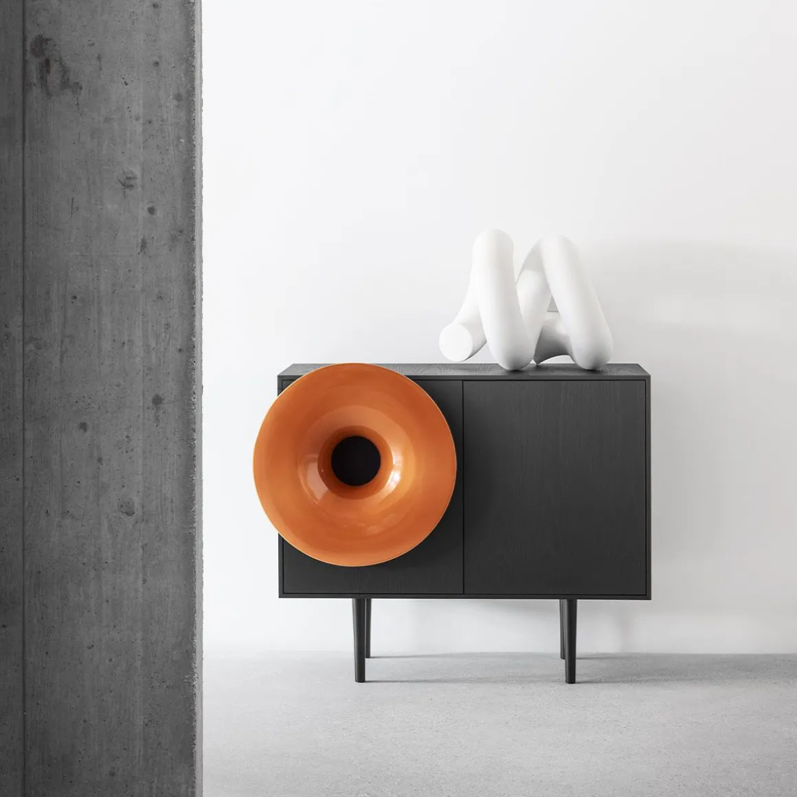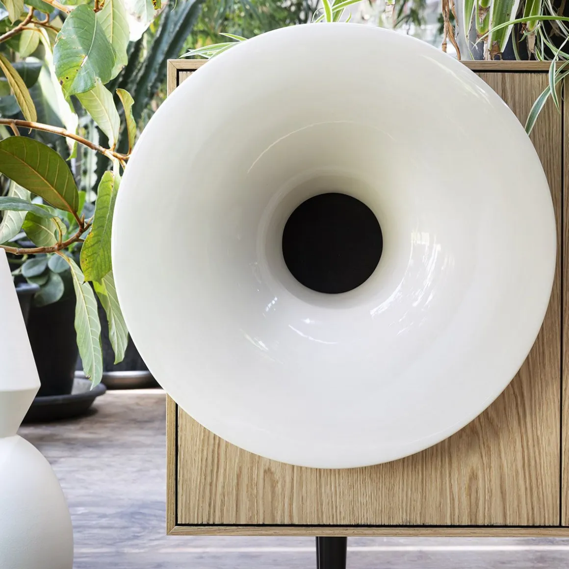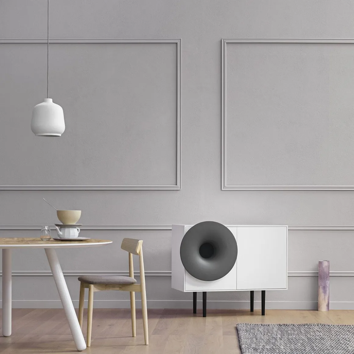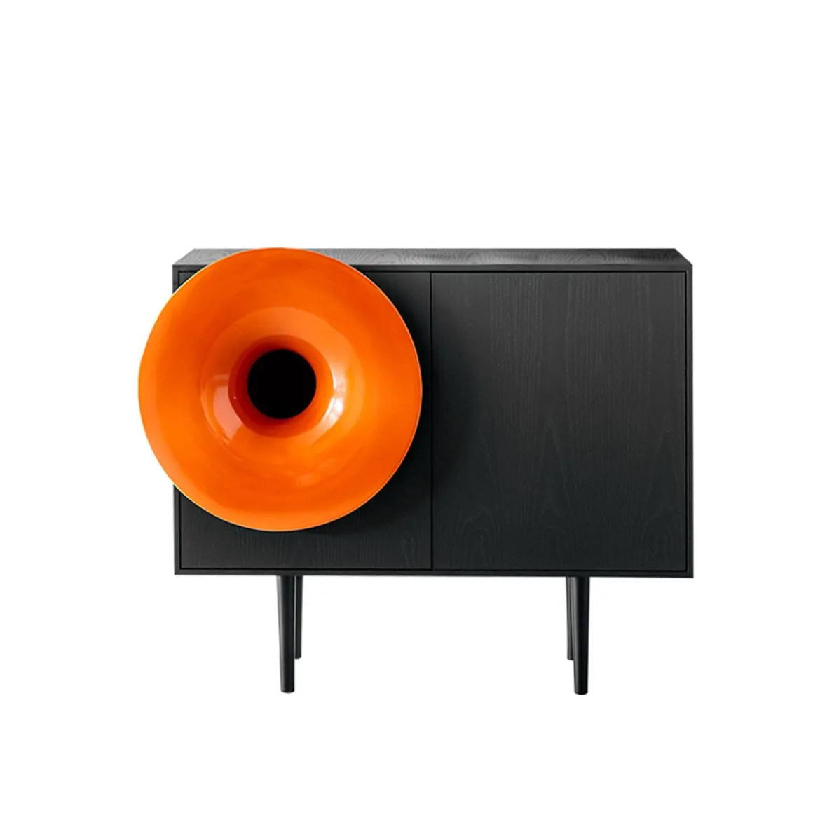 Caruso de Miniforms par Paolo Cappello. C’est presque un rite. S’asseoir, avec une lumière tamisée, et appuyer sur play sur son smartphone. Laisser la place aux vibrations. Caruso invite à s’assoir, à prendre une pause et retrouver la magie d’écouter et de voir un objet qui joue de la bonne musique. Il est sur le fil de l’ironie, un peu en avance, un peu nostalgique, en réussissant à unir l’hi-tech au living pour un meuble multi-sensoriel. Caruso est équipé d’un système de 50 Watt. Un seul haut-parleur qui a toute la définition dont vous avez besoin : des basses profondes et des des aigus clairs. Vous pouvez vous connecter à Caruso avec n’importe quel appareil équipé de Bluetooth.