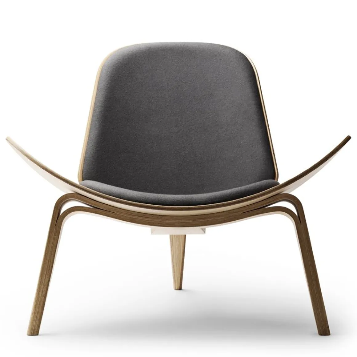 Hans J. Wegner a créé la chaise CH07 The Shellchair en 1963 et cette création est vite devenue une véritable icône du design scandinave. Cette chaise, qui a une forme et design unique, reste stable grâce à ses trois pieds et confortable grâce à son siège en forme d’aile. Il ne reste que trouver sa place dans votre maison / appartement ou bureau.