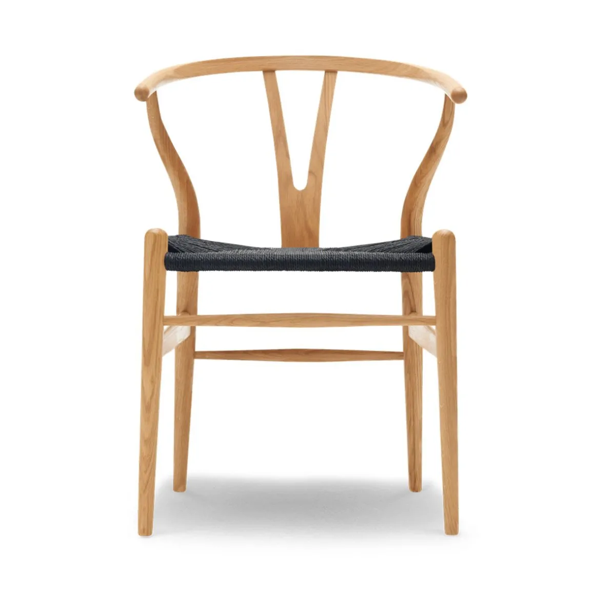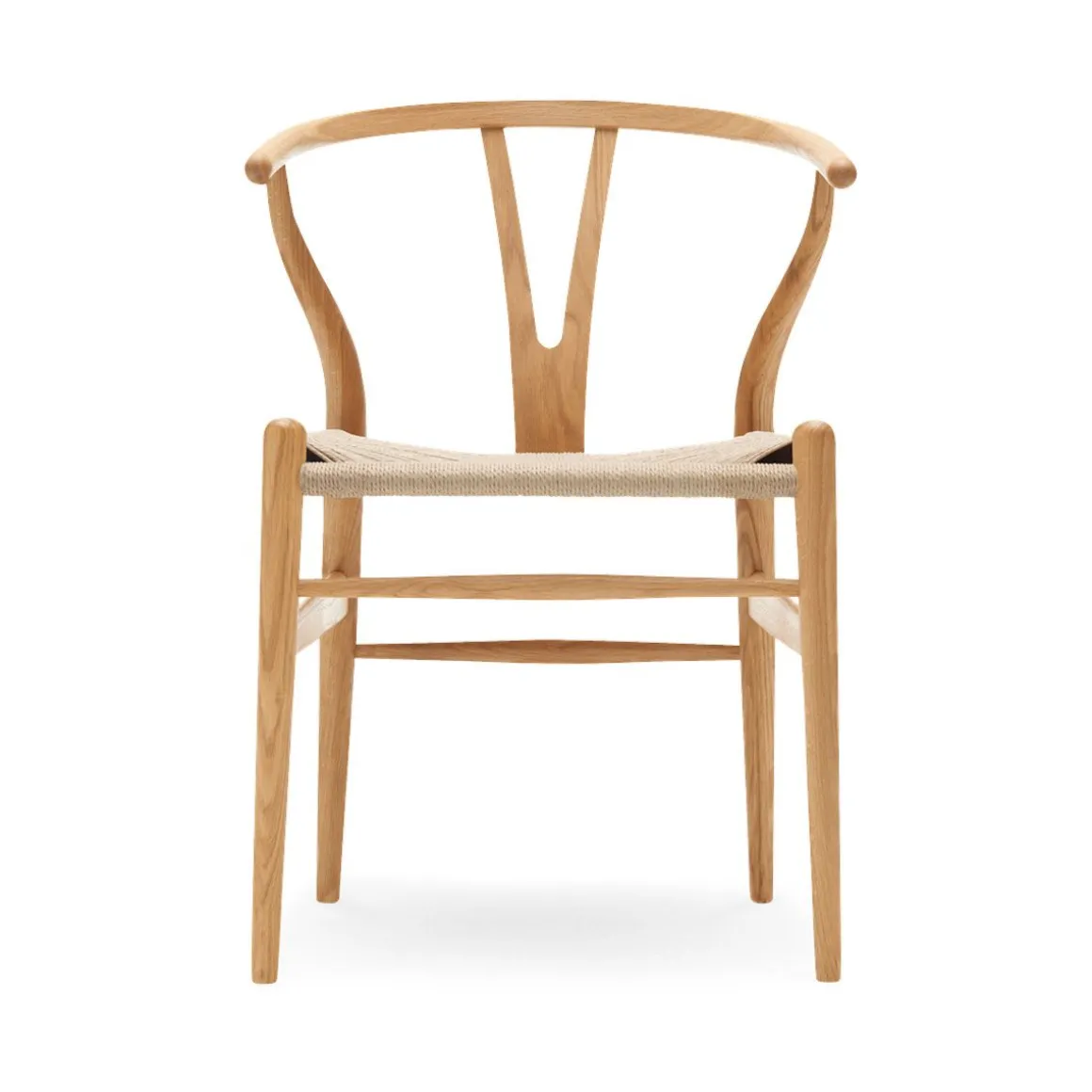 Cette chaise est surnommée « Wishbone » ou « chaise Y » en référence à son dossier en forme de brèche de poulet. Sa Y forme offre toute la variété de positions assises très confortables.