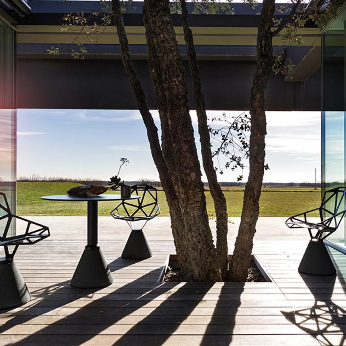 Chair one est une chaise design dessinée par Konstantin Grcic pour Magis. Chair_One, une chaise absolument unique. Cette chaise s’inscrit dans un style industriel moderne. La coque est une structure réalisée avec des formes géométriques planes qui s’unissent par les côtés comme un ballon de football. Une forme obtenue après une longue étude préparatoire, entre esquisses, maquettes en carton et prototypes, avant d’être réalisée en fonte d’aluminium poli, brillamment inaltérable, ou avec traitement ou titane fluoré et verni adapté pour l’utiliser à l’extérieur. La base en béton offre une touche contemporaine. La structure vient se poser avec délicatesse. Fine et atypique, l’assise se veut avant-gardiste se décline en 4 coloris.