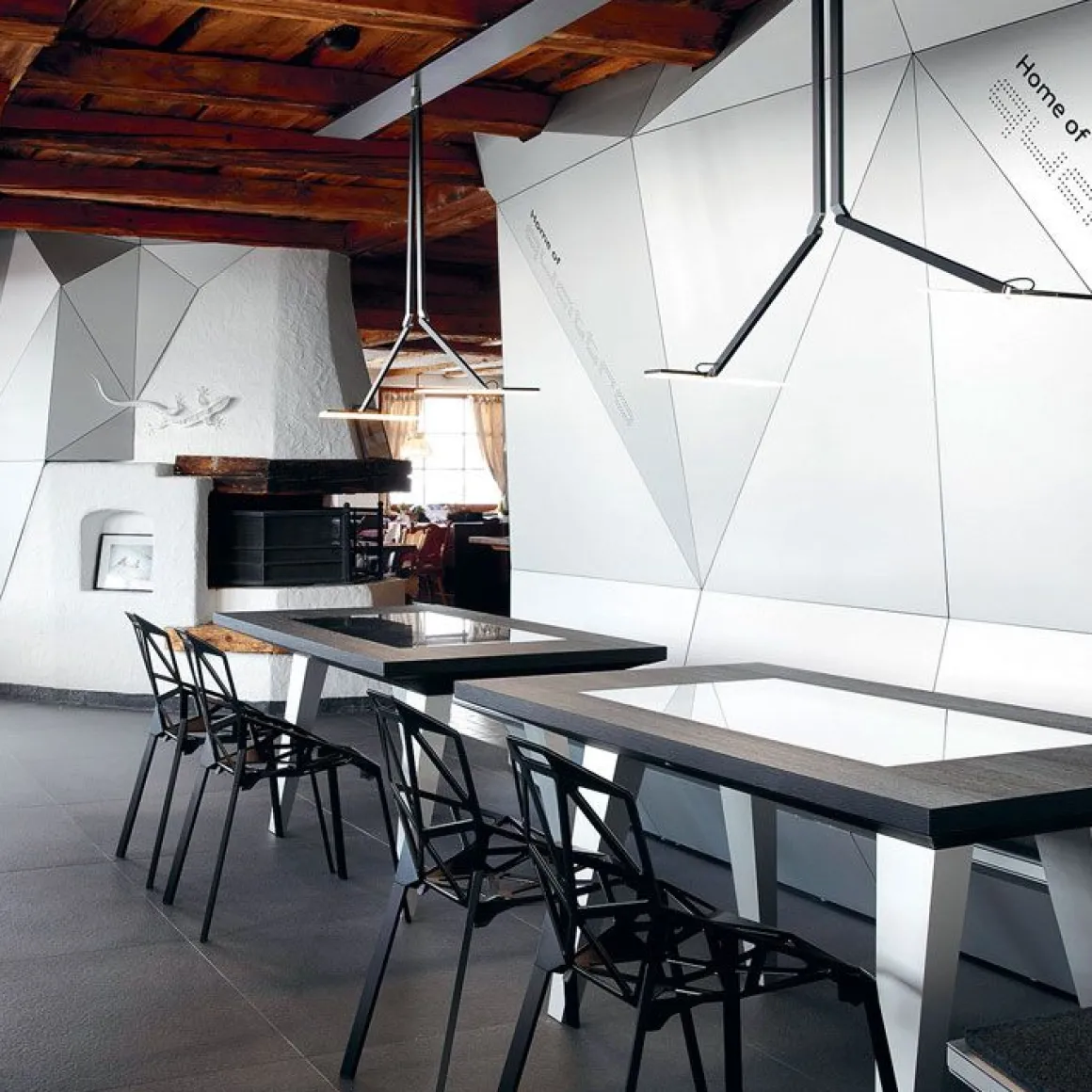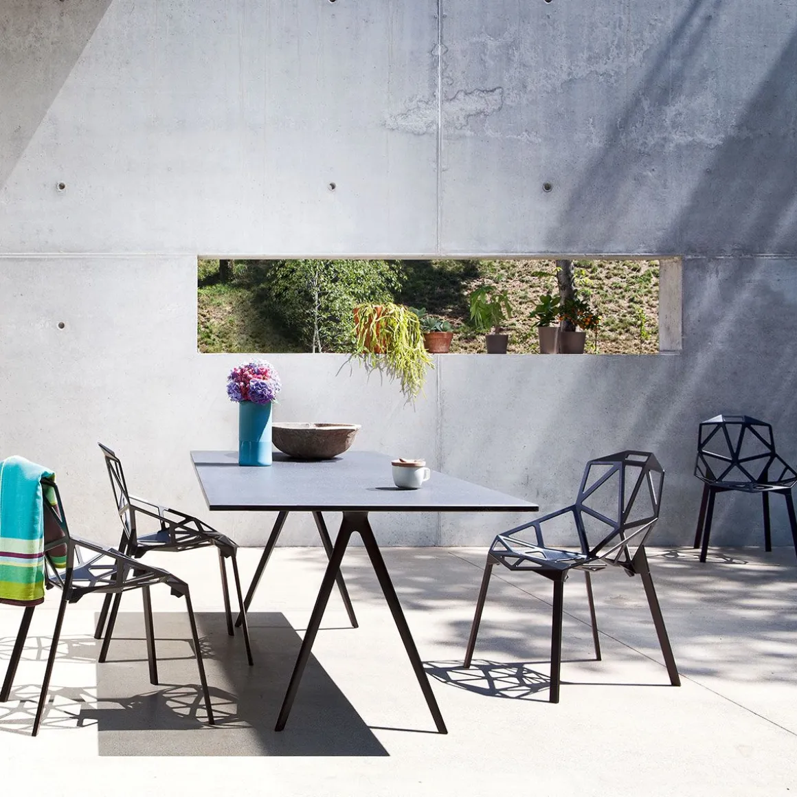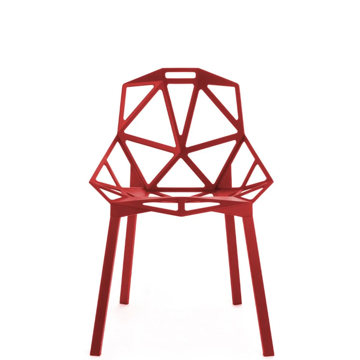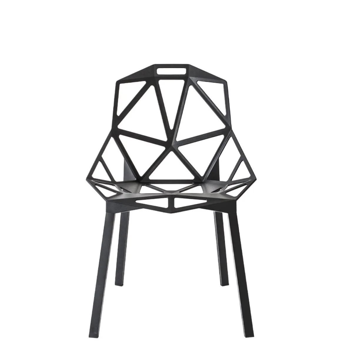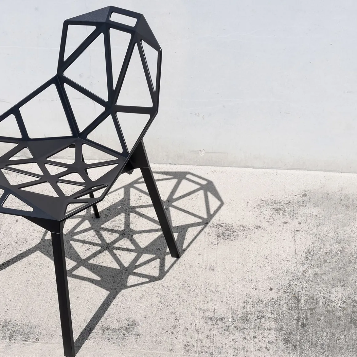 Chair_One, une chaise absolument unique. La coque est une structure réalisée avec des formes géométriques planes qui s’unissent par les côtés comme un ballon de football. Une forme obtenue après une longue étude préparatoire, entre esquisses, maquettes en carton et prototypes, avant d’être réalisée en fonte d’aluminium poli, brillamment inaltérable, ou avec traitement ou titane fluoré et verni adapté pour l’utiliser à l’extérieur. architecture contemporaine.