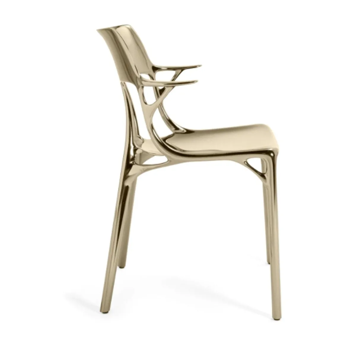 A.I. Métal est la nouvelle version métallique de la chaise réalisée pour la première fois à partir de matières recyclées où l’esthétique et les exigences structurelles, associées au design génératif, demeurent intactes. A.I. Métal est disponible dans les couleurs suivantes : bronze et titane.