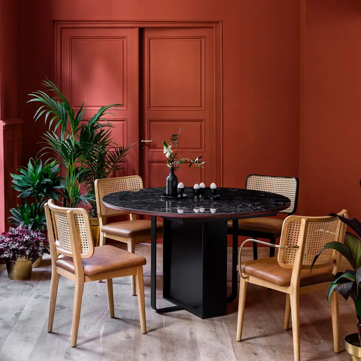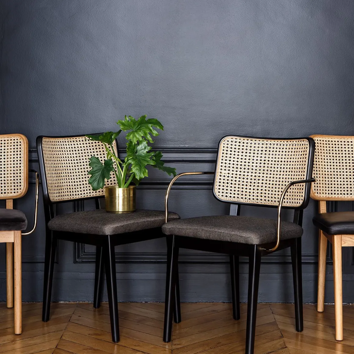 Droite, la chaise cannage Red Edition n’en est pas moins d’un confort absolu. Tout l’esprit des brasseries parisiennes gourmet, feutré et élégant se niche dans cette chaise qui marie les matières avec brio. Sans accoudoir sur les côtés elle a tout pour plaire.