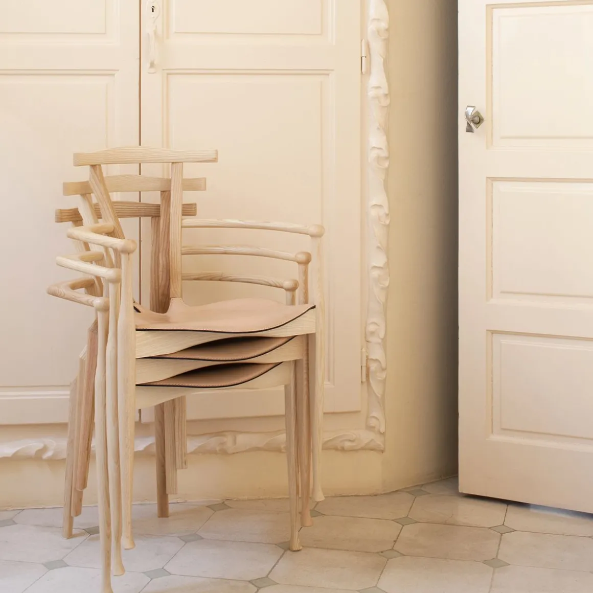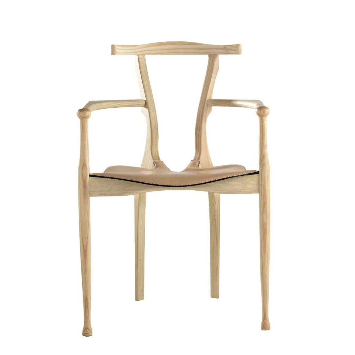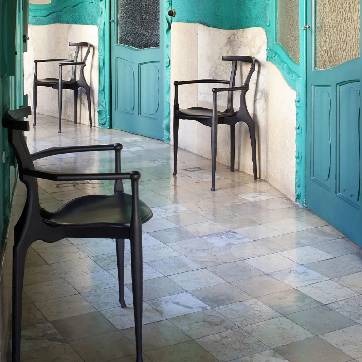 La chaise Gaulino est l’une des meilleures créations d’Oscar Tusquets et est devenue une icône du design espagnol. Fabriqué exclusivement à partir de bois et de cuir, le nom vient des influences qui ont inspiré le designer : Antoni Gaudí et Carlo Mollino. Réédition, améliorée, de la chaise historique Gaulino qui, conçue en 1987, a été sélectionnée au Prix de Design Industriel Adi-Fad de 1989 et à Iberdiseño en 1990. Depuis lors, elle a toujours fait partie des expositions rétrospectives de Design espagnol et figures dans les publications, ce qui en a fait une référence dans le design du XXe siècle en Espagne.