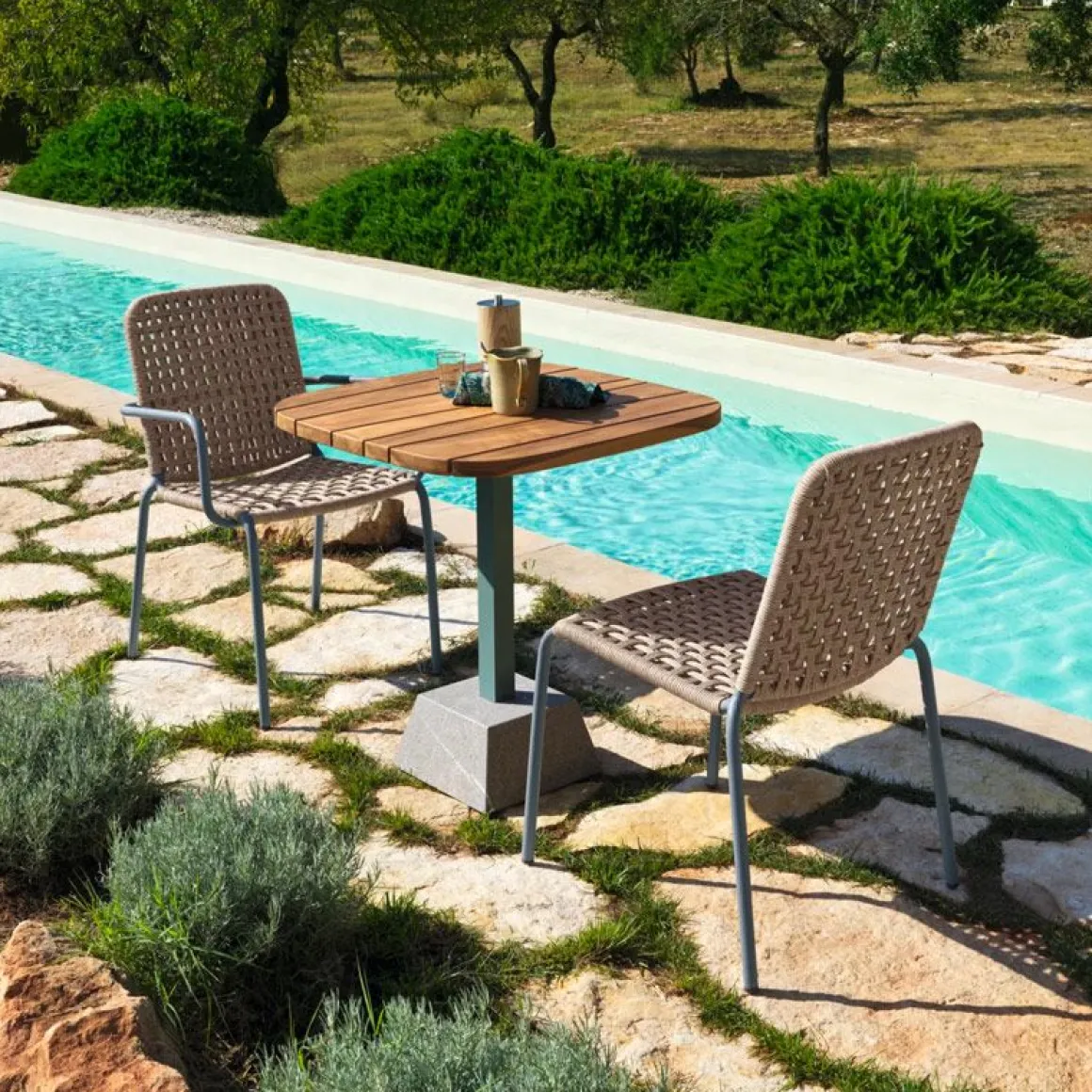 Chaise Straw 23/24 de Gervasoni par Paola Navone. Straw 23/24 est une famille de chaises simples et raffinées, proposées avec et sans accoudoirs, avec une structure en tube d’aluminium peint en Slate. Un produit à la fois svelte et léger revêtu d’un tressage fait main en corde de polyéthylène à double torsion, une fibre à l’aspect naturel, solide, flexible et durable qui a été spécialement conçue pour l’extérieur.