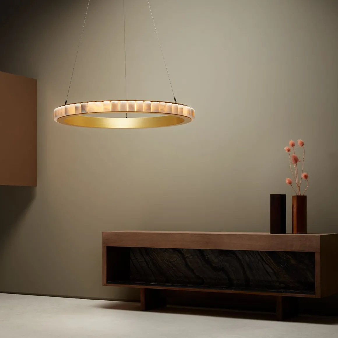 Inspiré par l’île légendaire, d’où des histoires mystiques de lumière et d’ombres ont enchanté le monde pendant des siècles, AVALON présente des cascades de lumière émanant d’un précieux anneau d’albâtre, encapsulé dans du laiton ou du bronze créant un éclairage exquis.