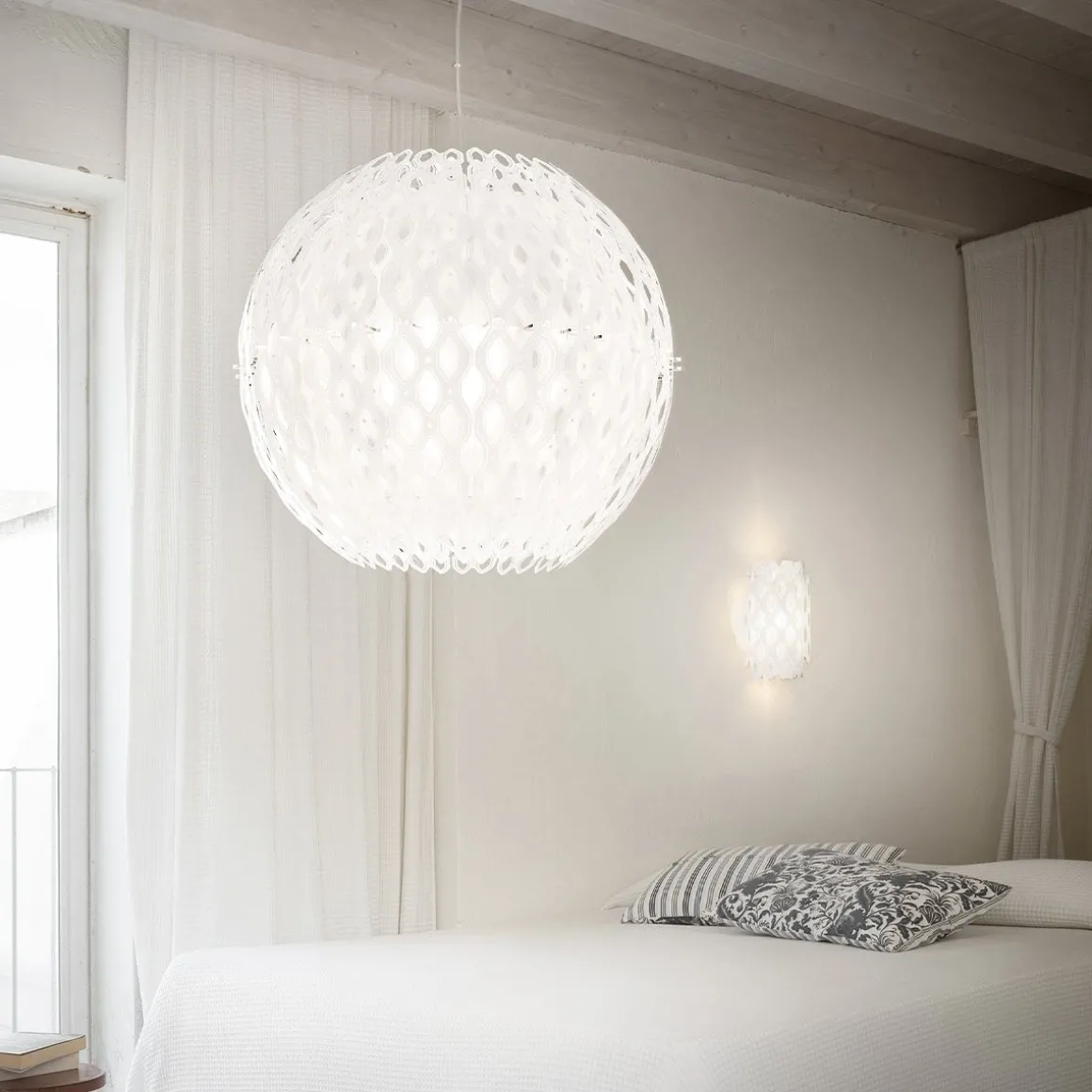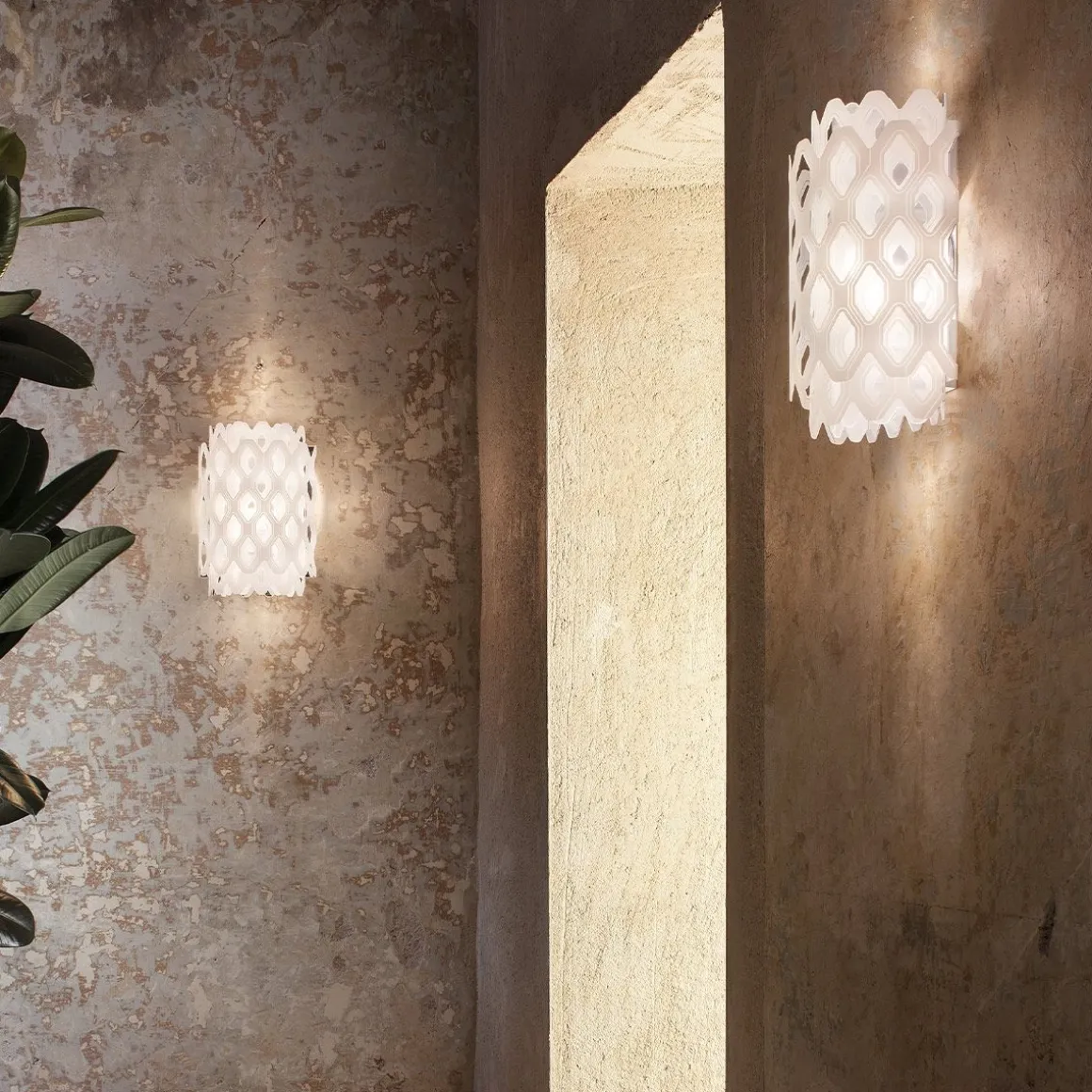 Charlotte Applique est issue de monde de l’illusion, du défi de transformer un élément bidimensionnel en volumes qui se multiplient à l’infini. La surface réfléchissante cachée à l’intérieur de cette lampe murale amplifie la puissance de l’ampoule en mettant en évidence la trame hypnotique des hexagones concentriques caractéristiques du design signé Fuksas. Réalisée entièrement à la main en Cristalflex®, Charlotte Applique est munie d’un double système d’accroche : comme un cadre, pour ceux qui veulent éviter de percer leur mur, ou avec des points d’ancrage muraux pour ceux qui préfèrent davantage de sécurité.